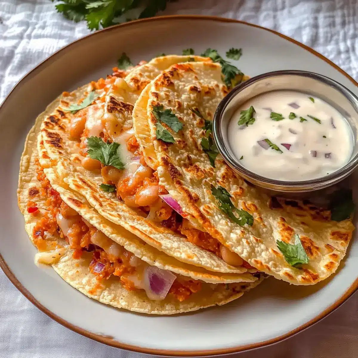 Once fried, remove the tacos from the pan and place them on a paper towel to absorb any excess oil. Garnish with fresh cilantro and serve immediately while they’re still hot and crispy. Pair these Buffalo White Bean Tacos with additional sour cream on the side for a creamy balance against the spicy kick, making your meal satisfying and truly delicious!