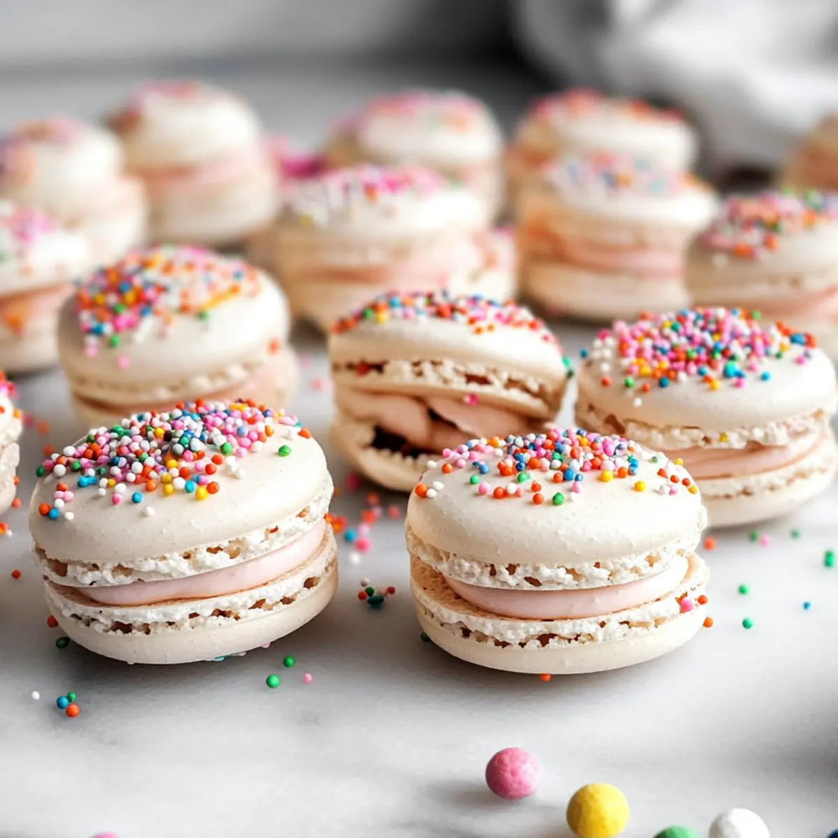 These Birthday Cake Macarons are perfect for meal prep enthusiasts! You can prepare the macaron shells up to 24 hours in advance and store them in an airtight container at room temperature to maintain their delicate texture. Additionally, the buttercream filling can be made up to 3 days ahead; just refrigerate it in a sealed container. To keep the flavors fresh, allow the buttercream to come to room temperature before piping it onto the macaron shells. When you’re ready to serve, simply assemble the macarons by pairing the shells and filling them with the creamy buttercream, ensuring you’ll enjoy these delightful treats just as delicious as the day they were made!
