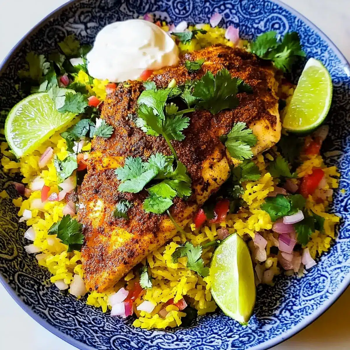 Masala Baked Fish with Turmeric Rice for a Flavorful Feast