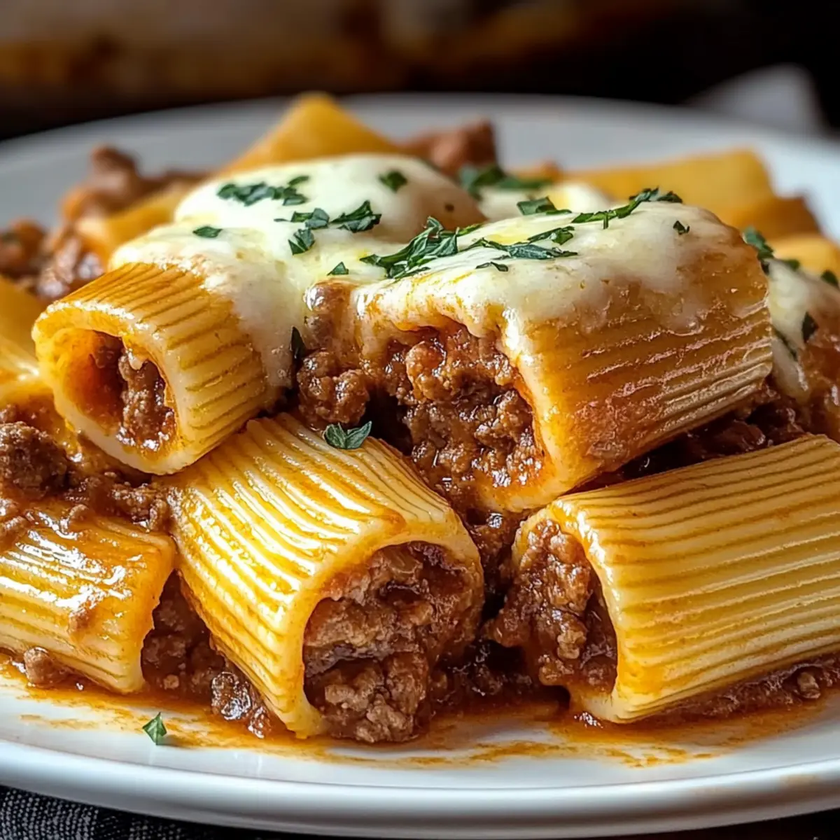 Baked Rigatoni Stuffed with Beef Ragu & Mozzarella Bliss