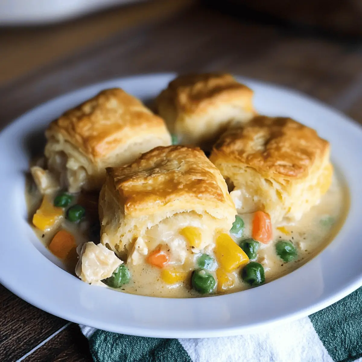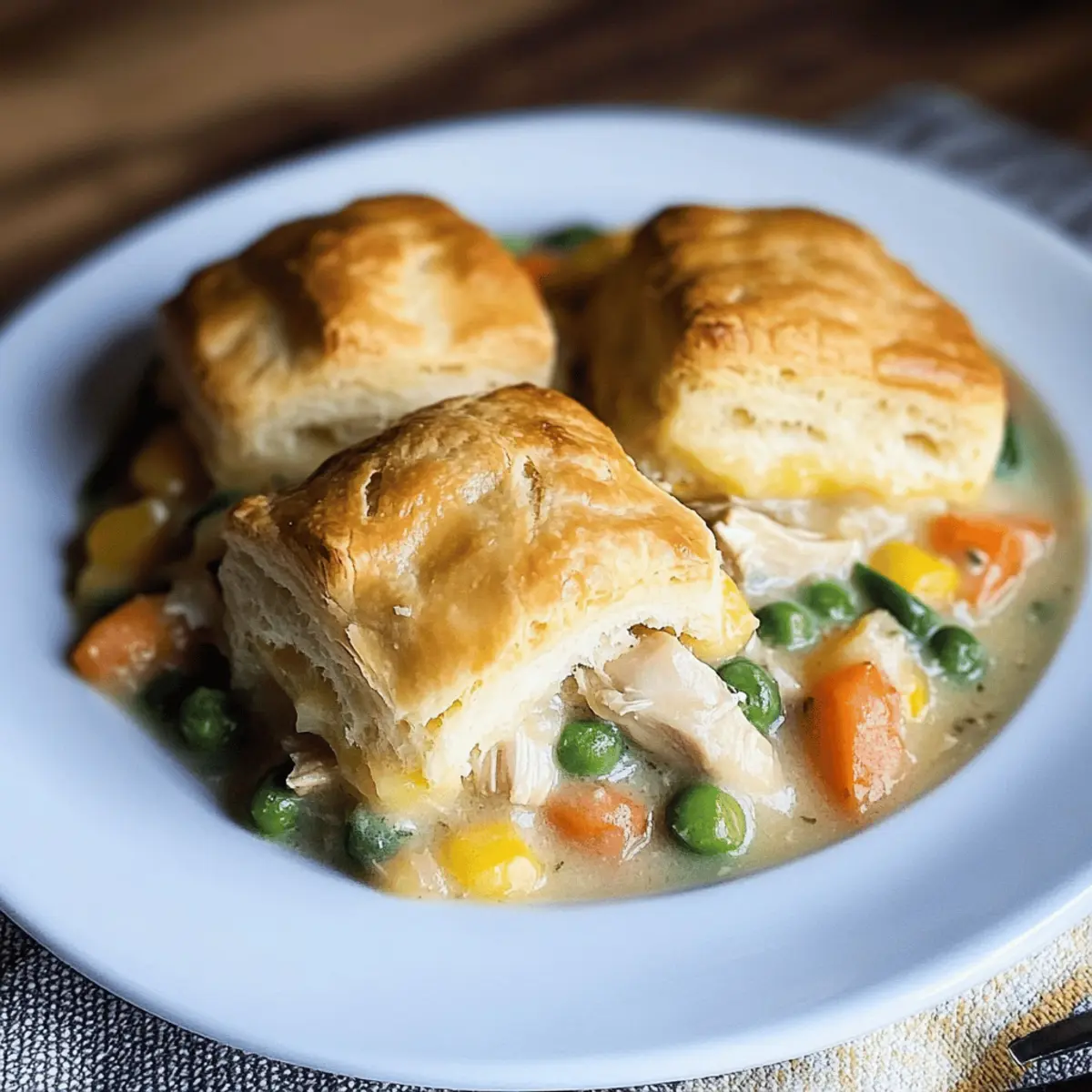 Comforting and nostalgic, this Chicken Pot Pie with Biscuits is a warm embrace on chilly evenings. Quick prep means you can serve a homemade meal in just 35 minutes, perfect for busy families. Versatile options allow for personal touches—swap chicken for turkey or use different veggies! Budget-friendly ingredients let you create a hearty meal without breaking the bank. Plus, it’s a fantastic way to impress family and friends, combining creamy filling with golden, flaky biscuits. Enjoy a slice of home-cooked joy today!