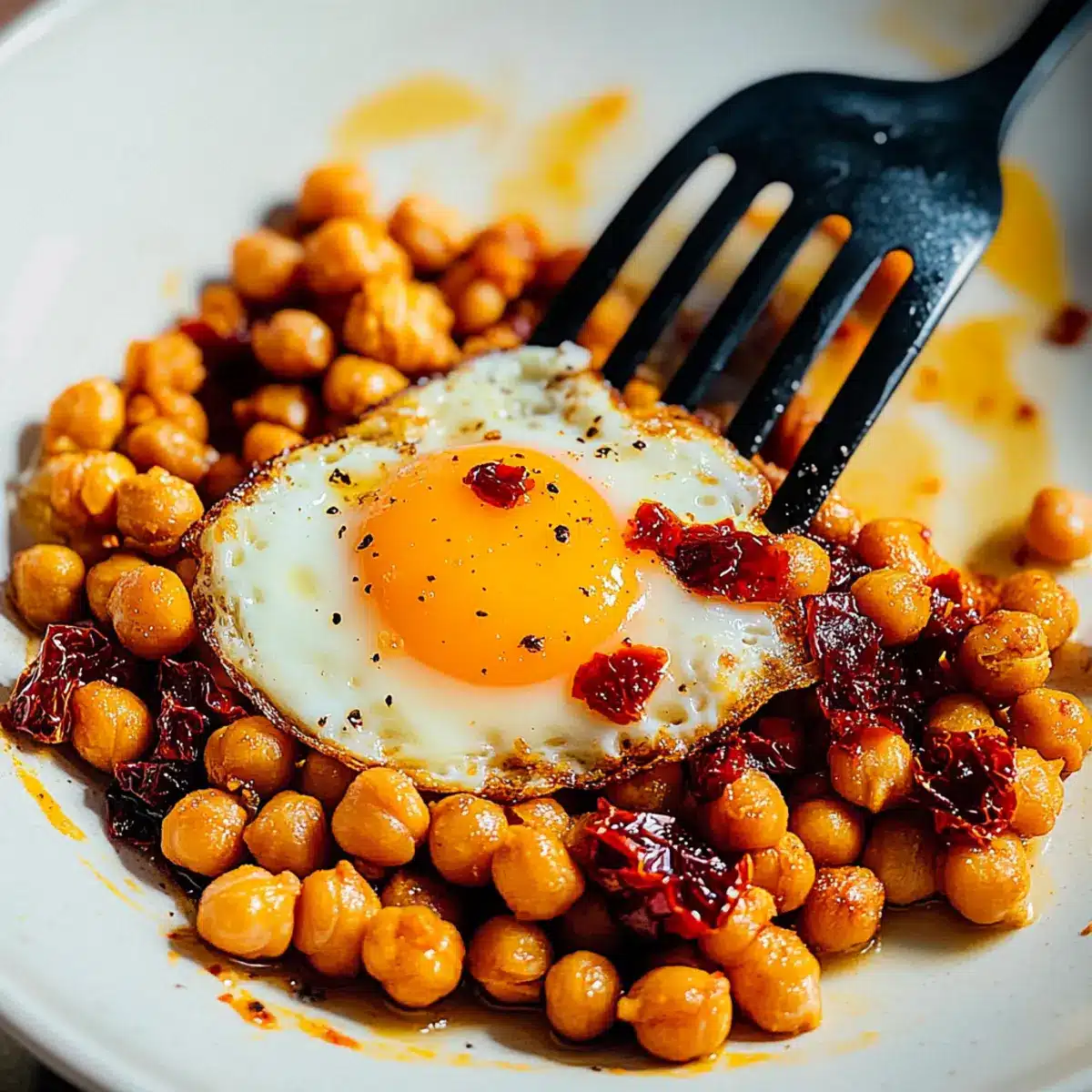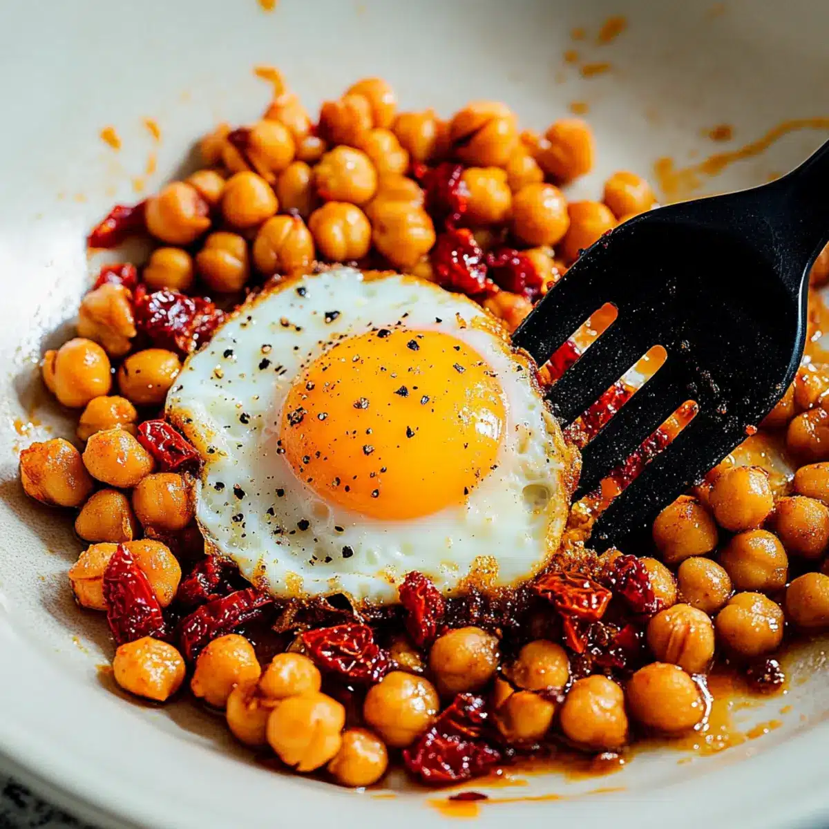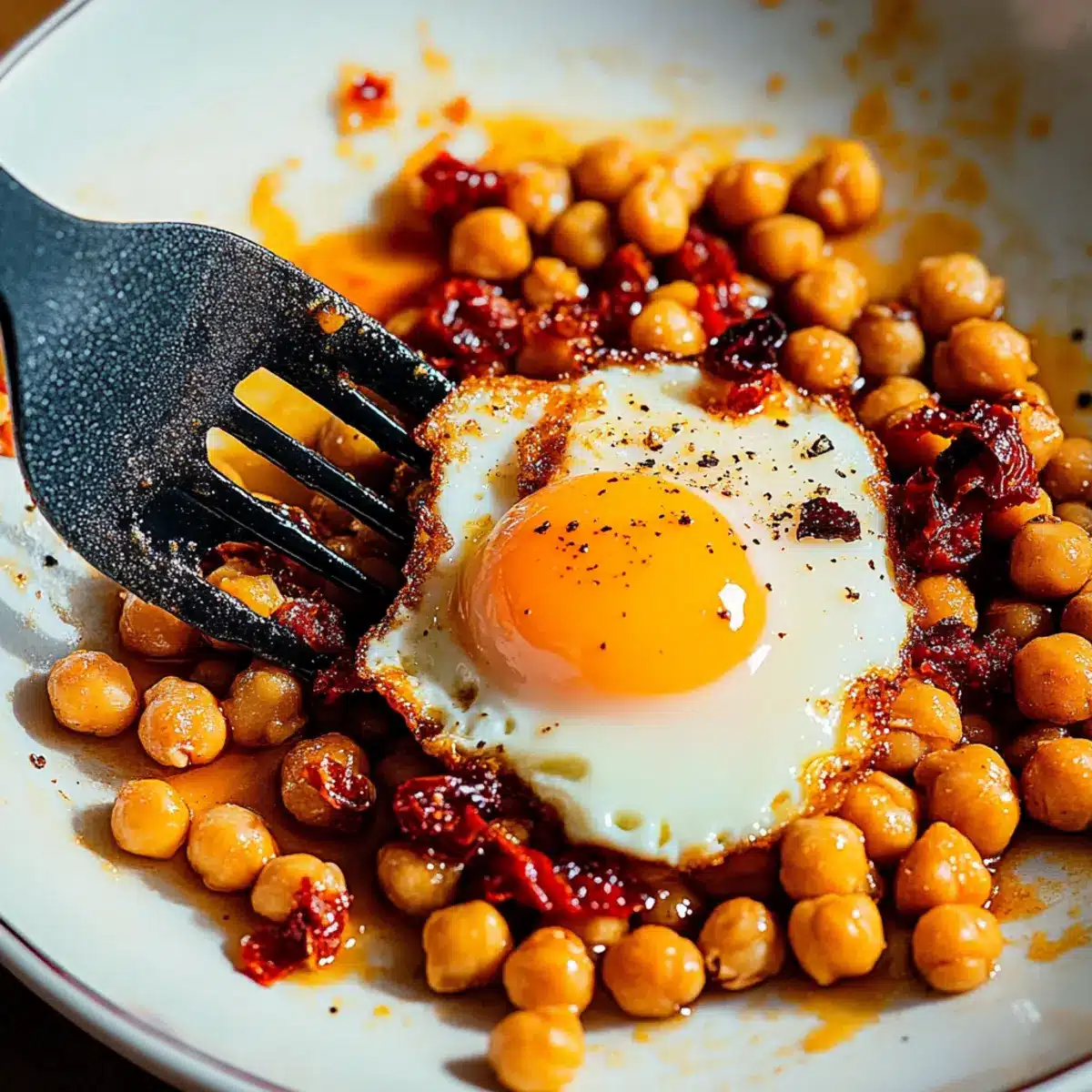 These Chickpea Fried Eggs are perfect for busy mornings when you need a nutritious start! You can prepare the chickpeas with sundried tomatoes and spices up to 3 days in advance. Store the mixture in an airtight container in the refrigerator, ensuring it’s well-cooled to maintain texture. When you’re ready to enjoy this delightful breakfast, simply reheat the chickpea mixture in a skillet, create spaces for the eggs, and crack them in. Cook for 3-5 minutes, and you’ll have a high-protein meal that’s just as delicious as when freshly made. Taking these few steps ahead of time truly simplifies your meal prep and brings cozy mornings back into your hectic routine!