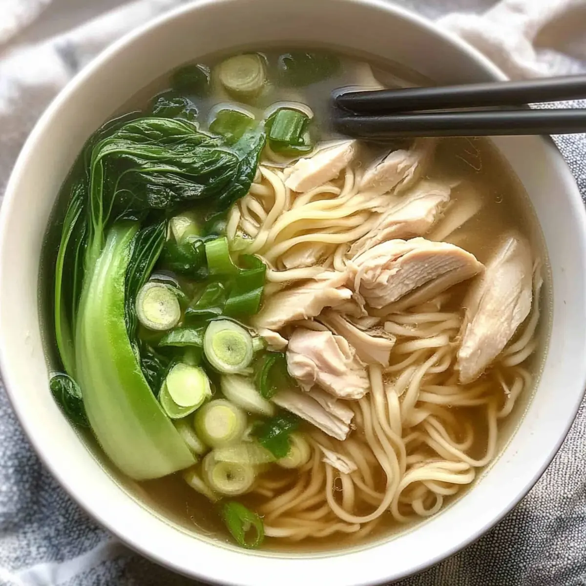 As the aroma of simmering broth fills the kitchen, I can’t help but feel a wave of comfort wash over me. This Quick and Easy Chinese Chicken Noodle Soup is my go-to for those bustling evenings when I crave something nourishing yet speedy. With just ten minutes to spare, I whip together a warm, savory bowl brimming with tender chicken and colorful veggies, making it the perfect choice for busy families or anyone looking to turn the tide on fast food. The beauty of this dish lies in its incredible versatility—you can customize it with whatever proteins and vegetables you have on hand, ensuring every bowl feels uniquely yours. Ready to discover how to create a heartwarming meal that nourishes both body and soul? Let’s dive in!