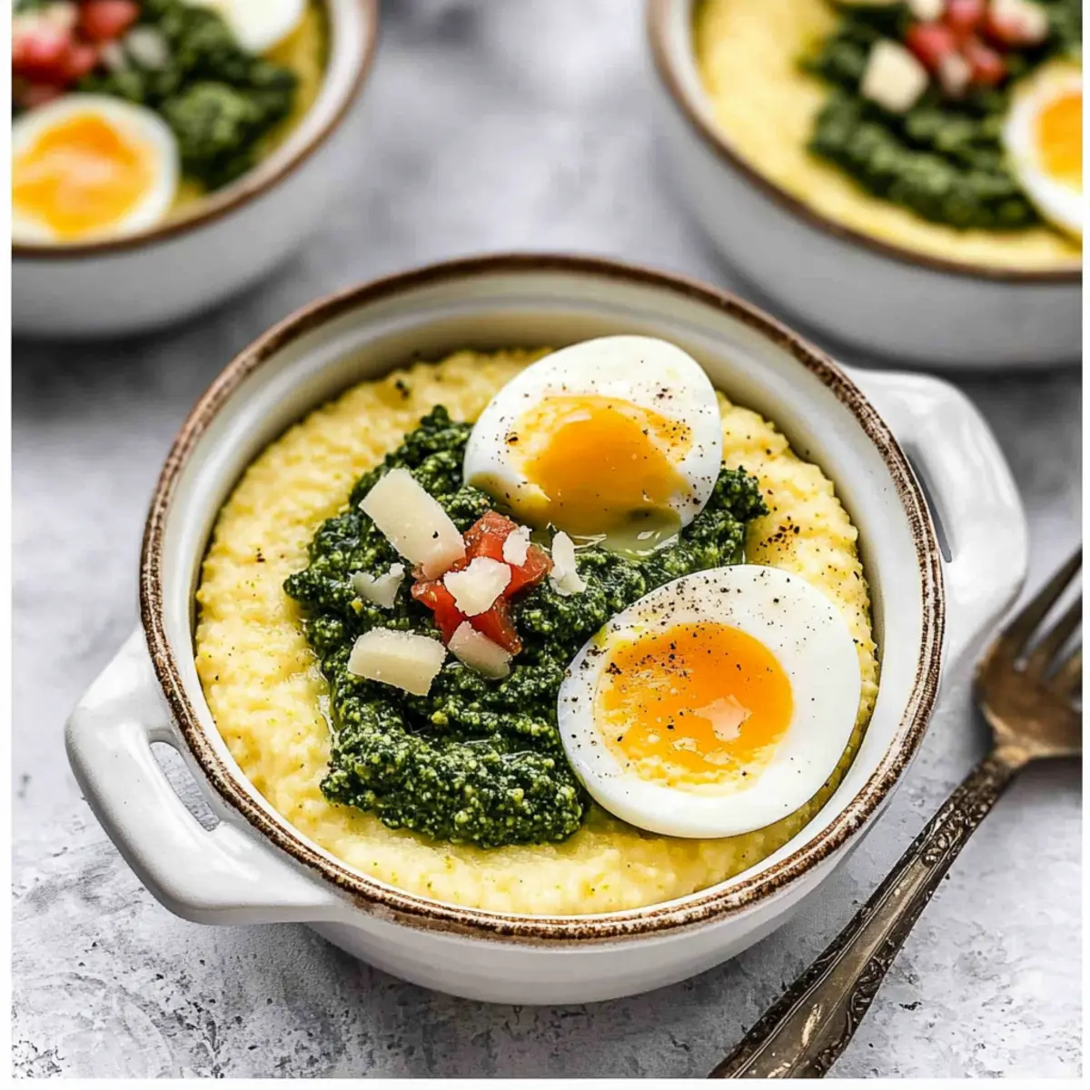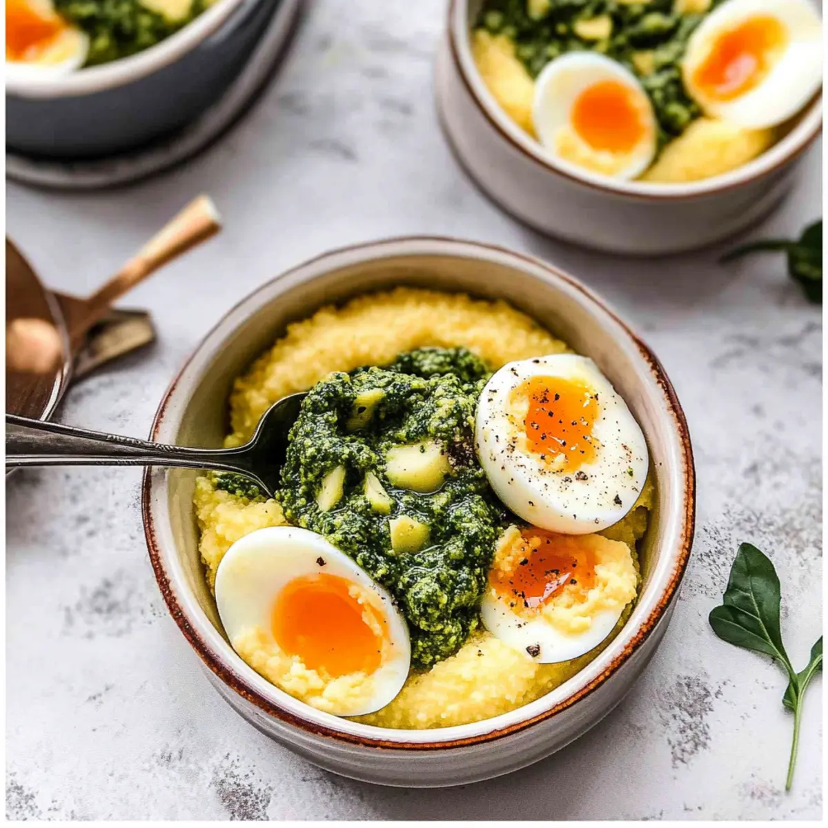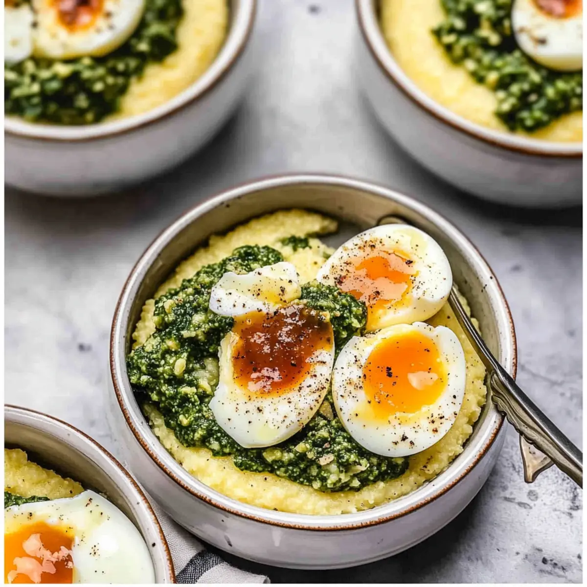 Creamy Breakfast Polenta with Pesto & Eggs for a Cozy Morning
