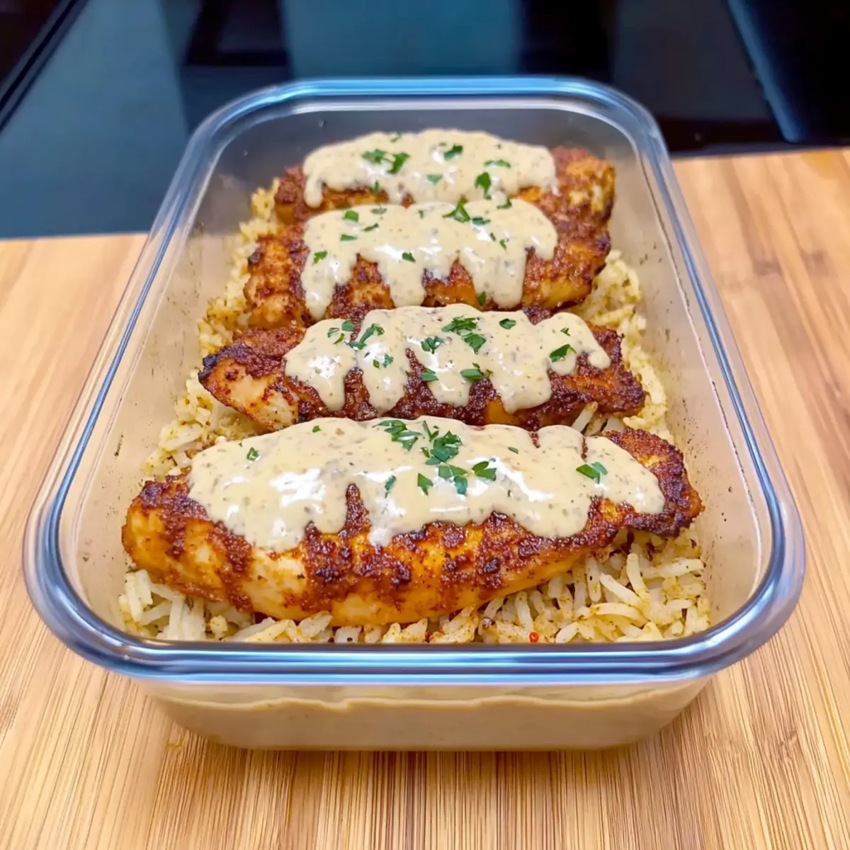 Creamy Comfort: The luscious garlic cream sauce envelops the chicken and rice in rich, comforting flavor.