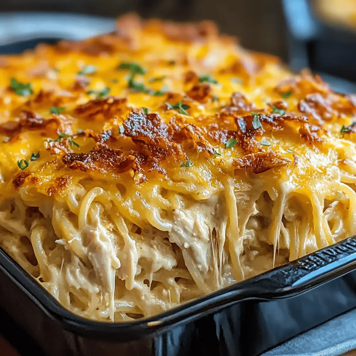 As I stood stirring the sauce, a familiar aroma wafted through my kitchen—a warm embrace of creamy ranch and savory spices. The moment the golden-bubbly crust of my Creamy Southern Spaghetti Bake emerged from the oven, I knew that dinner was destined to be a winner. This ultimate comfort casserole effortlessly combines tender spaghetti, shredded chicken, and a rich, cheesy sauce, elevated by crispy bacon on top. Perfect for cozy weeknights or potluck gatherings, it’s a delightful dish that not only comforts the soul but is also make-ahead friendly, saving you time during busy days. Ready to dig in and find out how to bring this Southern classic to your table? Let’s dive into the recipe!