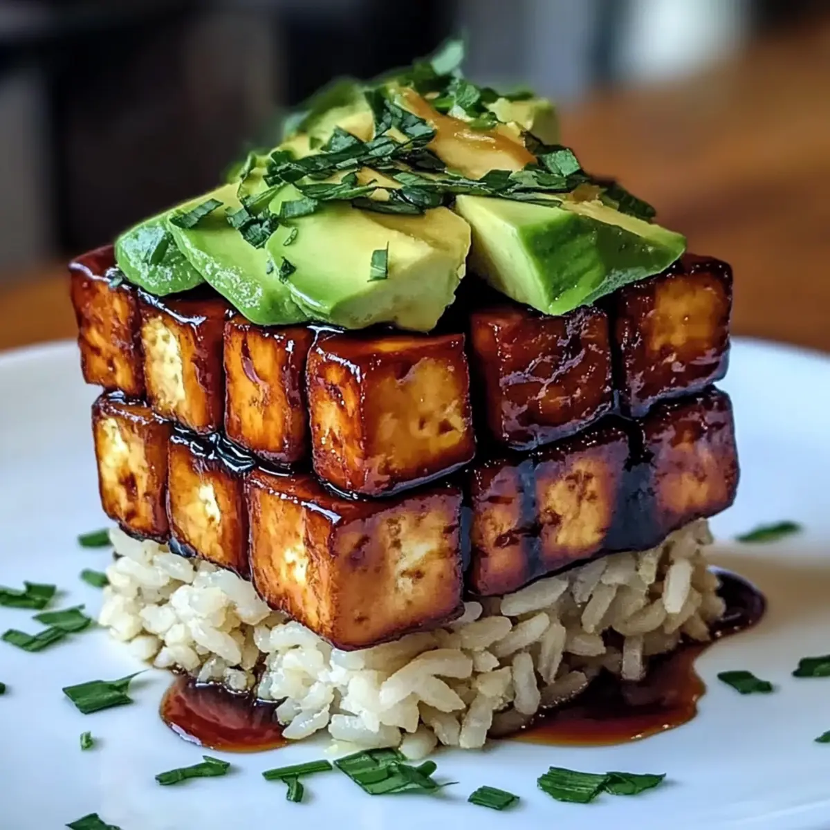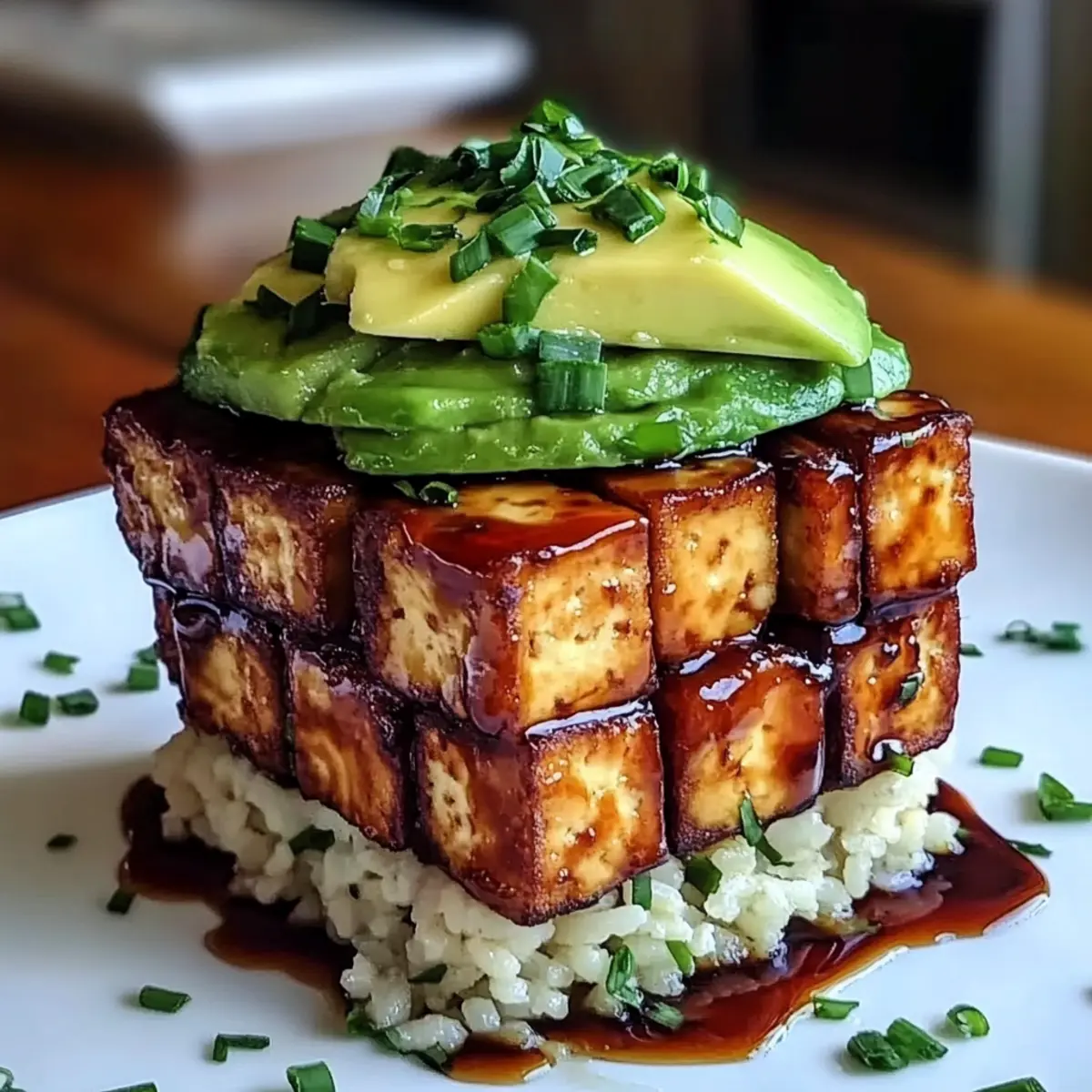 Crispy Teriyaki Tofu and Avocado Rice Stack That's Pure Bliss