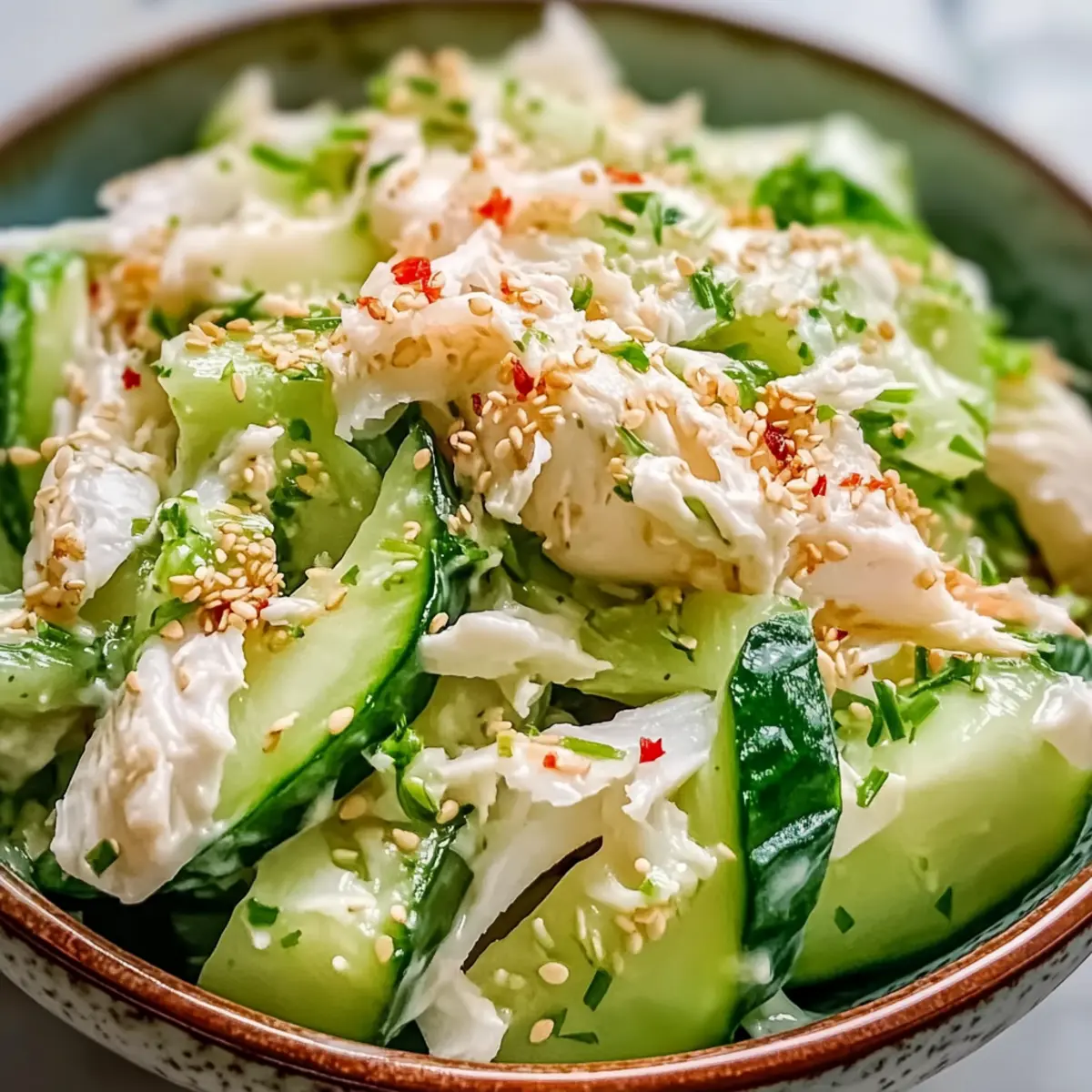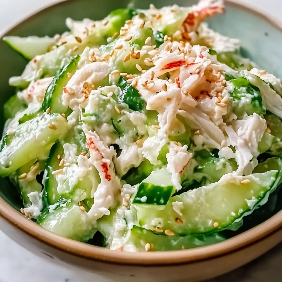 Freshness in Every Bite: This salad brilliantly combines crisp cucumbers and sweet crab meat for a refreshing meal.