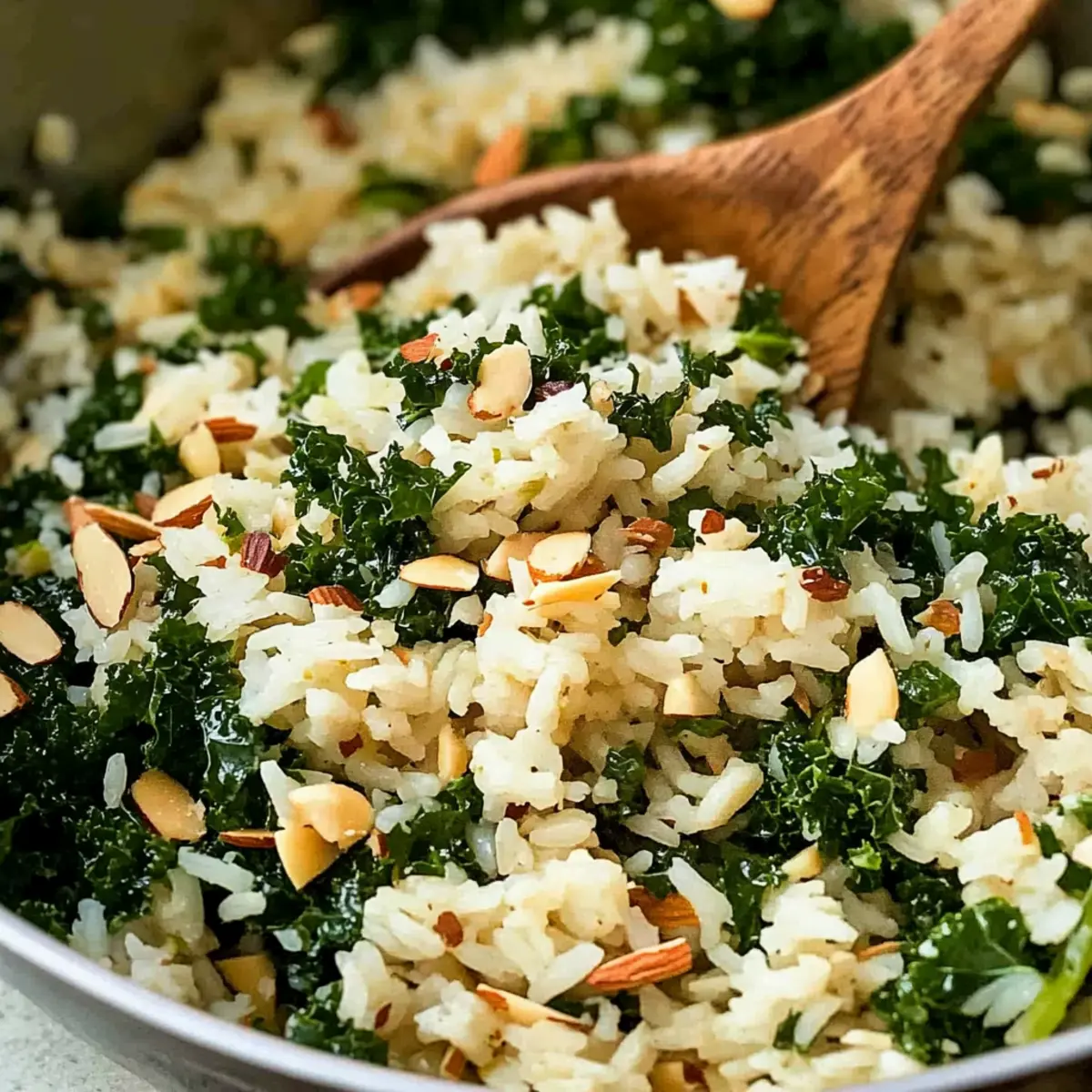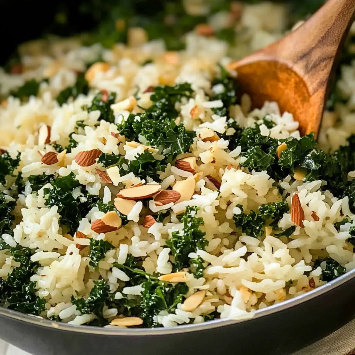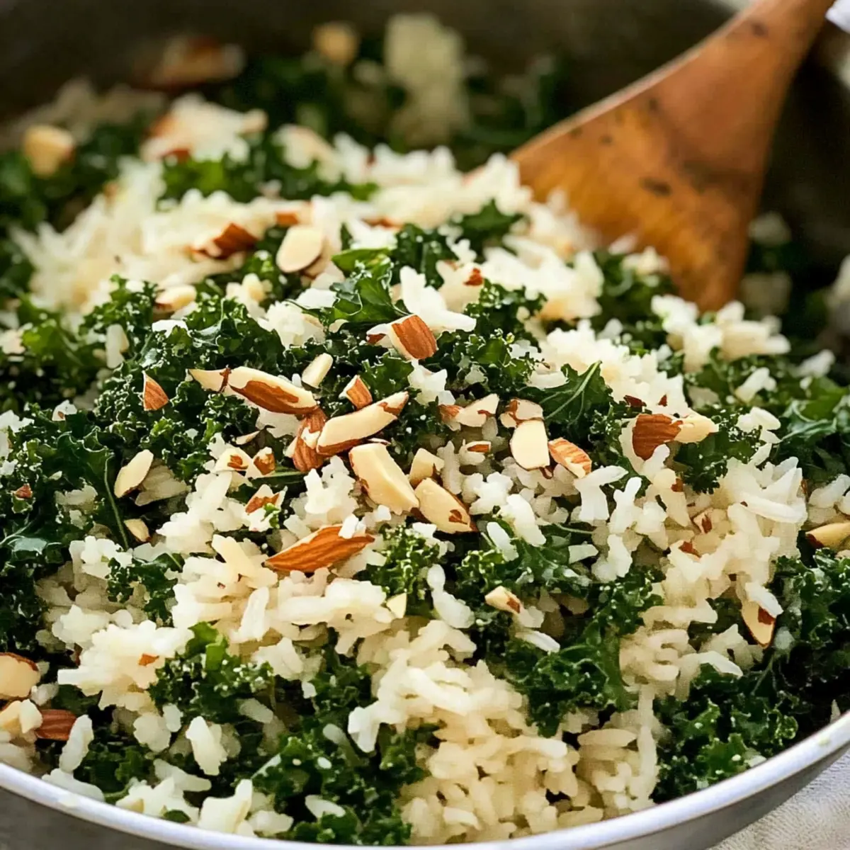 - Gently fluff the rice with a fork to combine with the wilted kale. Optionally stir in additional butter for creaminess, season with salt and pepper, then top with chopped almonds.