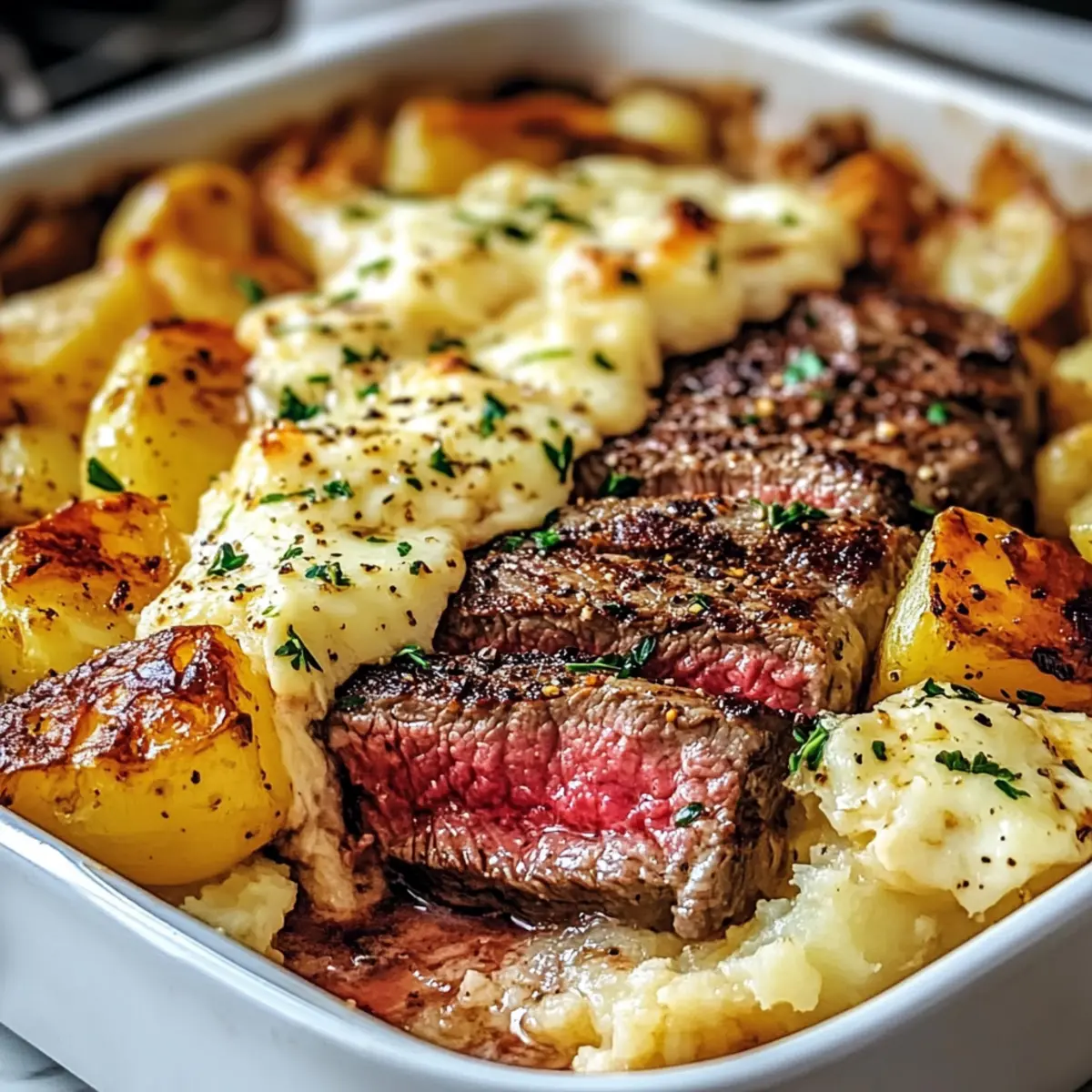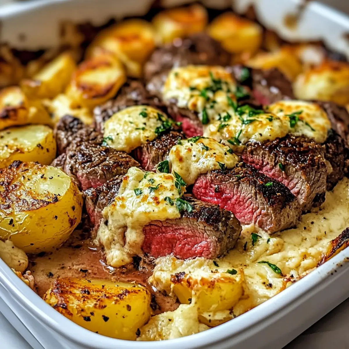 Garlic Butter Steak & Cheddar Potato Bake: Ultimate Comfort Dish