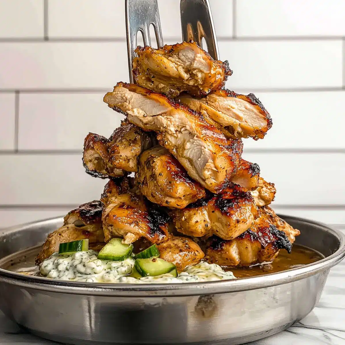 Juicy Thighs Only: The key to moist, flavorful gyros is using chicken thighs rather than breasts; thighs stay juicy and tender during cooking.