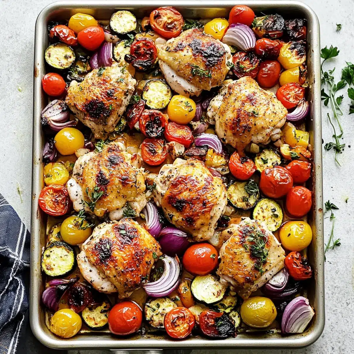 Vibrant Flavors: The zesty lemon-garlic marinade infuses the chicken and vegetables with a refreshing taste that transports you straight to the Mediterranean.