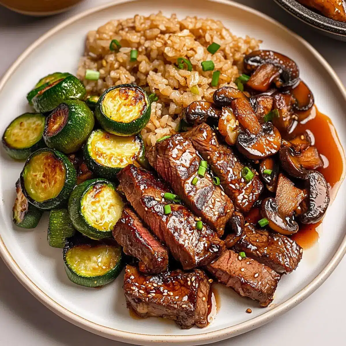 These Hibachi Steak preparations are perfect for busy home cooks looking to streamline their weeknight dinners! You can slice the steak and marinate it in the savory-sweet sauce up to 24 hours in advance, allowing the flavors to deepen. Additionally, chop the vegetables (mushrooms, onions, and zucchini) and store them in an airtight container in the refrigerator for up to 3 days. When you’re ready to serve, simply sear the marinated steak for 2-3 minutes on each side, sauté the prepped veggies, and combine everything as per the recipe. This way, you can enjoy restaurant-quality Hibachi Steak with minimal last-minute effort, keeping your evenings stress-free and delicious!