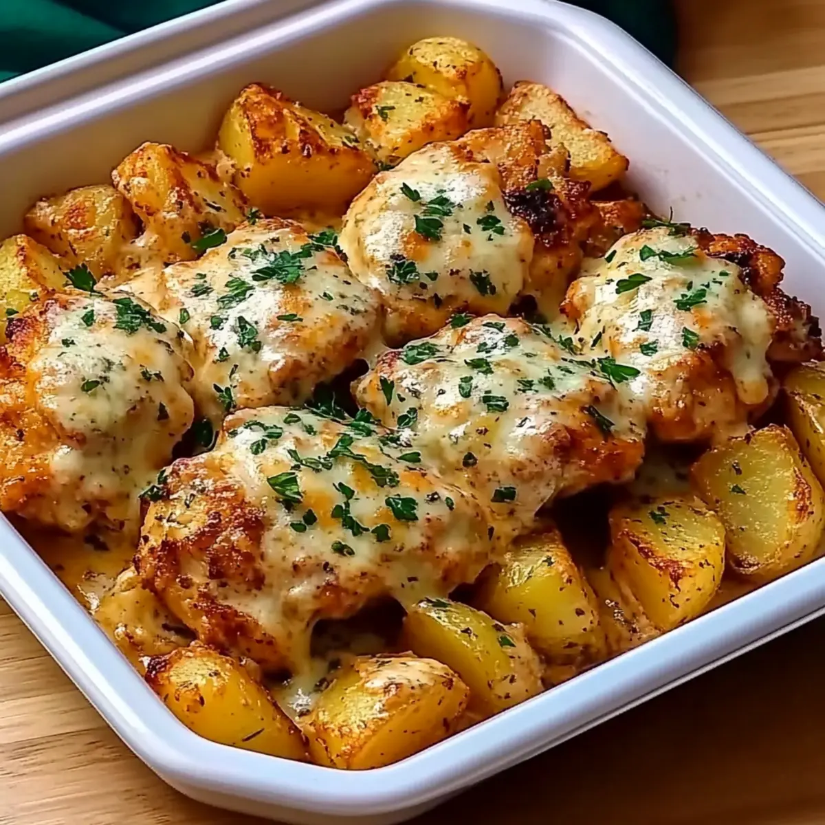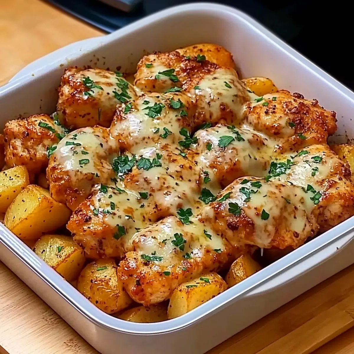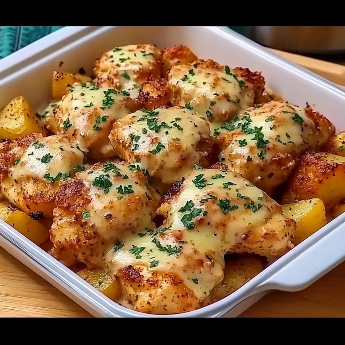 Crispy texture: Enjoy golden, crispy potatoes alongside tender chicken, creating a satisfying contrast that your family will love.
