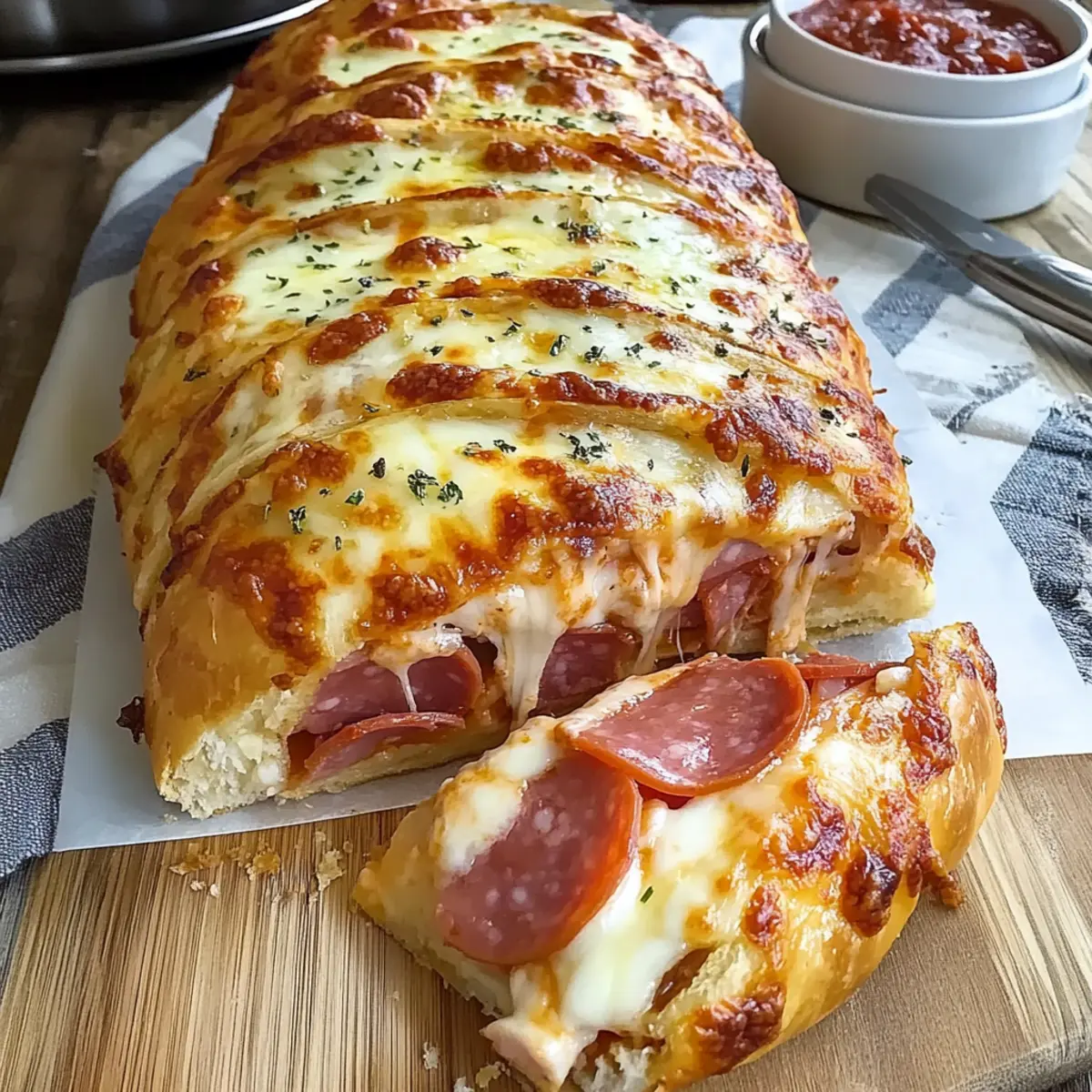 - Garlic Bread Sticks: Soft, buttery breadsticks infused with garlic and herbs enhance the Italian theme, perfect for dipping in any leftover pizza sauce. Their chewy texture balances the crispy exterior of the Stromboli.