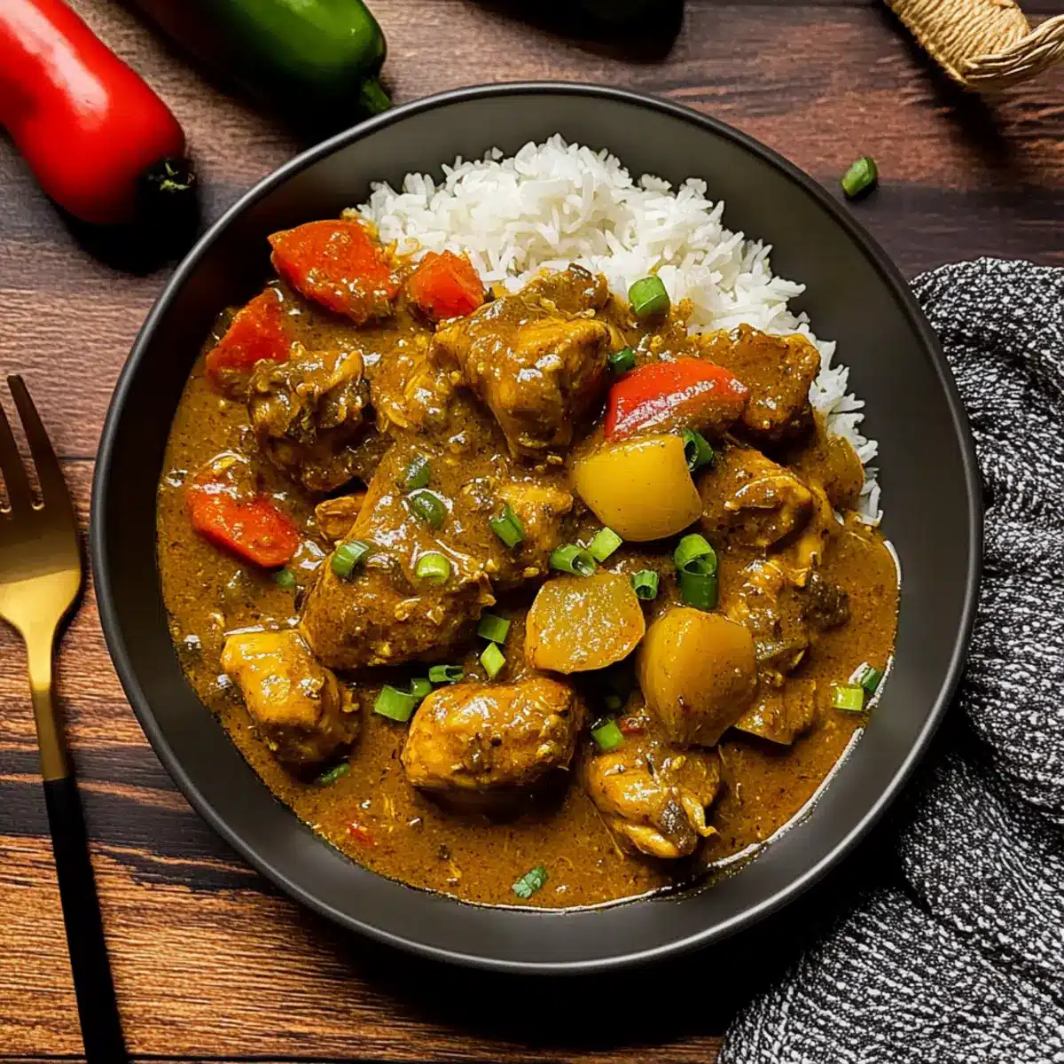 The tantalizing aroma of spices dancing through the kitchen—that’s where the magic begins with this Authentic Jamaican Curry Chicken. As I stir the ingredients, memories of sun-kissed beaches and vibrant markets in Jamaica fill my heart. This dish is a true homage to island life, featuring succulent chicken simmered in creamy coconut milk, bursting with the fiery kick of scotch bonnet peppers. Not only does this recipe embrace the spirit of comfort food, but it’s also a win for any busy home chef—quick to prepare and naturally gluten-free and dairy-free. You can easily customize the spice levels, ensuring everyone at the table can savor each mouthful. Ready to bring a taste of paradise into your home? Let’s dive into the flavorful world of Jamaican Curry Chicken!