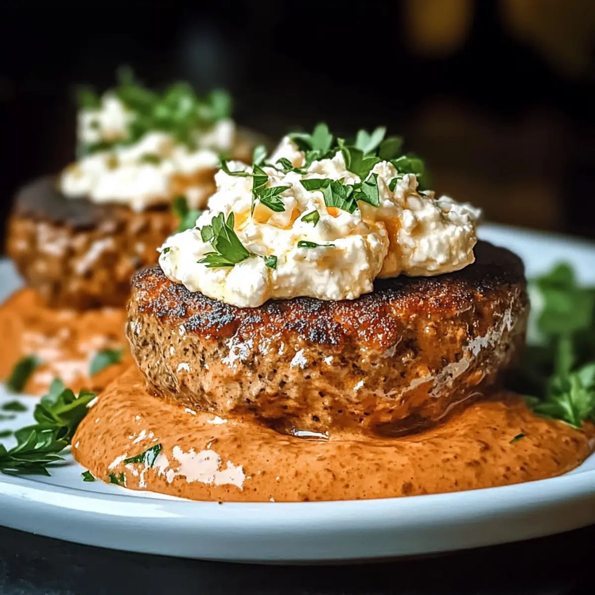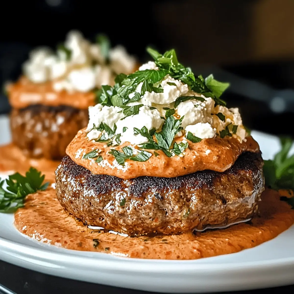 Savory Keto Feta Burgers with Tomato Cream Bliss