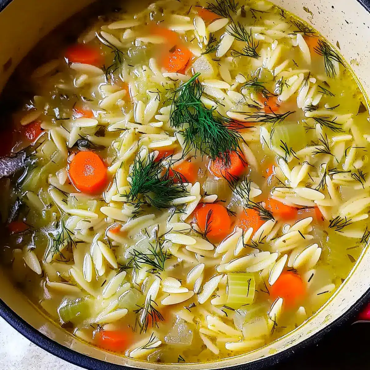 Definitely! This Easy Orzo, Leek, and Dill Soup is vegetarian and can be made vegan by ensuring your vegetable broth is free from animal products. If you or anyone you’re serving has allergies, be mindful of the potential gluten in orzo; however, you can easily substitute with gluten-free pasta options. Always double-check your ingredient labels just to be safe!