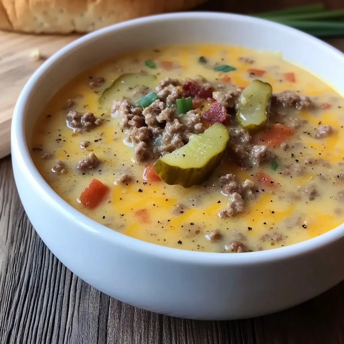 “Can you believe it? A rich, creamy soup that captures the essence of a classic cheeseburger! My Low Carb Cheeseburger Soup is the ultimate comfort food, especially on those chilly evenings when you crave something hearty yet healthy. With a delightful blend of ground beef, melty cheese, and tangy pickles, this one-pot wonder not only satisfies your taste buds but also fits seamlessly into a low-carb lifestyle. Plus, it’s a family-friendly dish that cooks up in no time, letting you enjoy maximum flavor with minimal fuss and cleanup. Are you ready to transform your dinner into a delicious bowl of comfort? Let’s get cooking!”