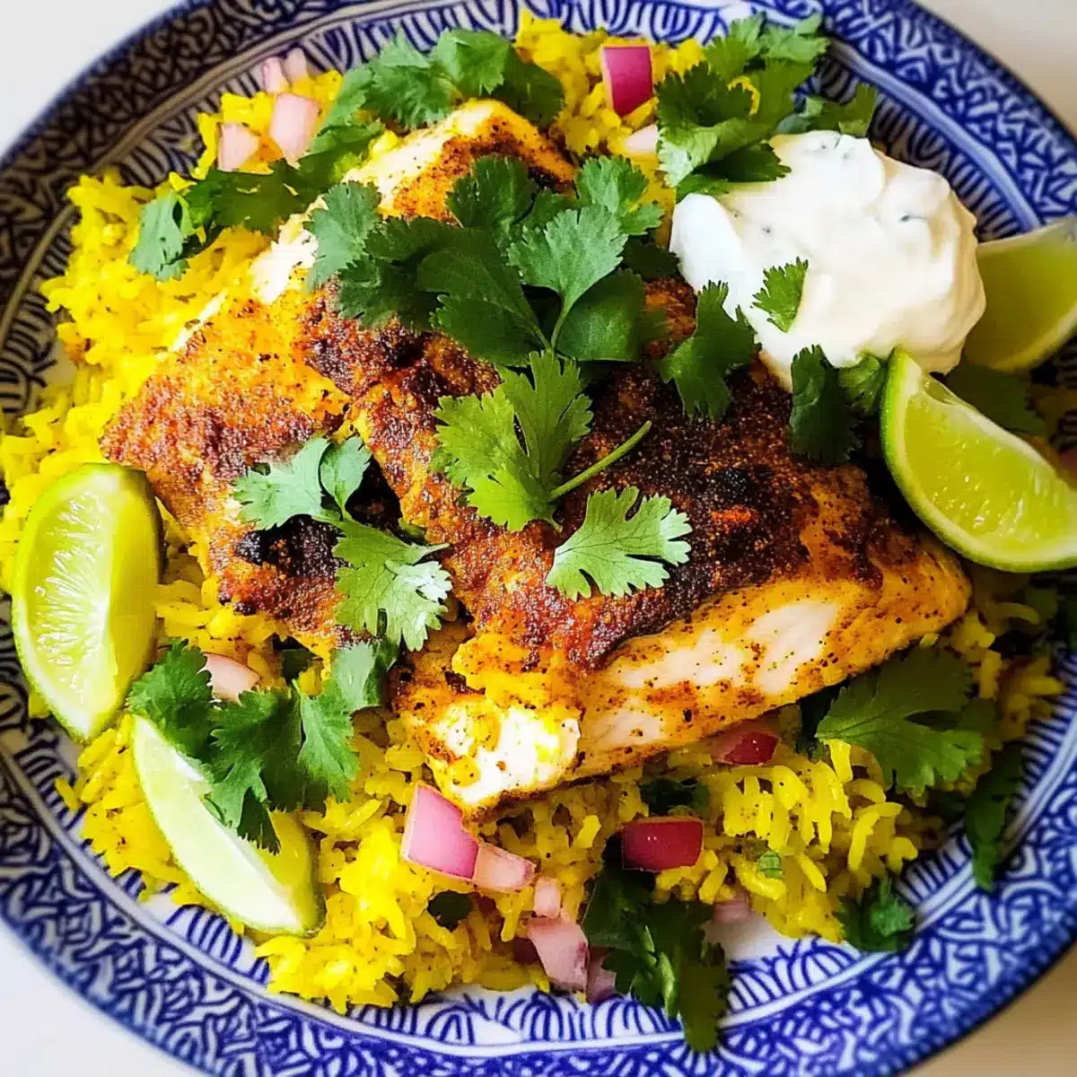 Masala Baked Fish with Turmeric Rice for a Flavorful Feast
