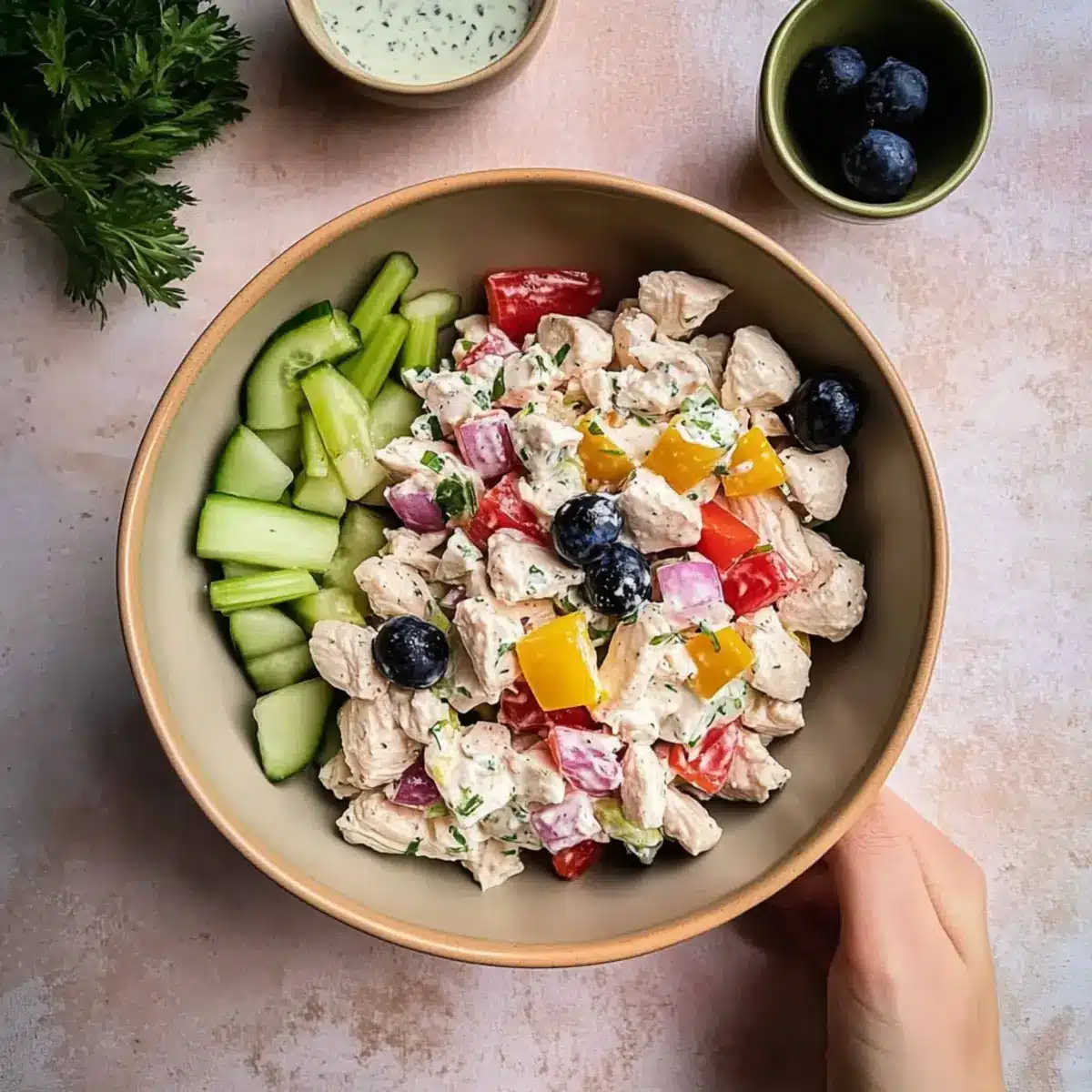 Proper Chilling: Allow the Mediterranean Chicken Salad to chill for at least an hour before serving for the best flavor infusion and freshness.