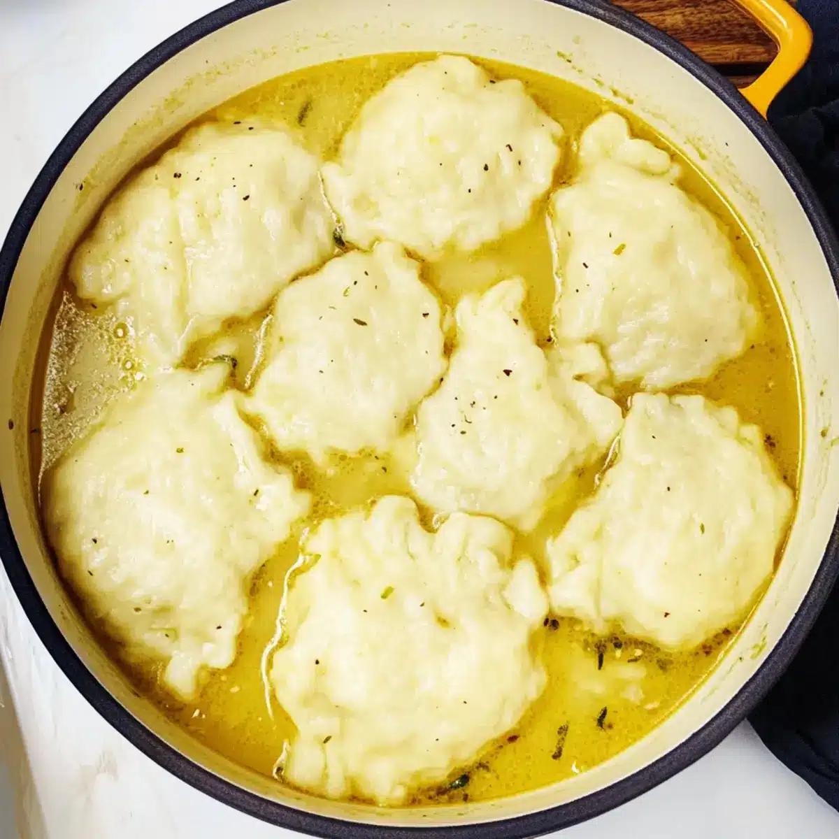 Don’t Peek: Refrain from lifting the lid while the dumplings are cooking. The steam is crucial for their rise and fluffy texture, so keep that lid tight!