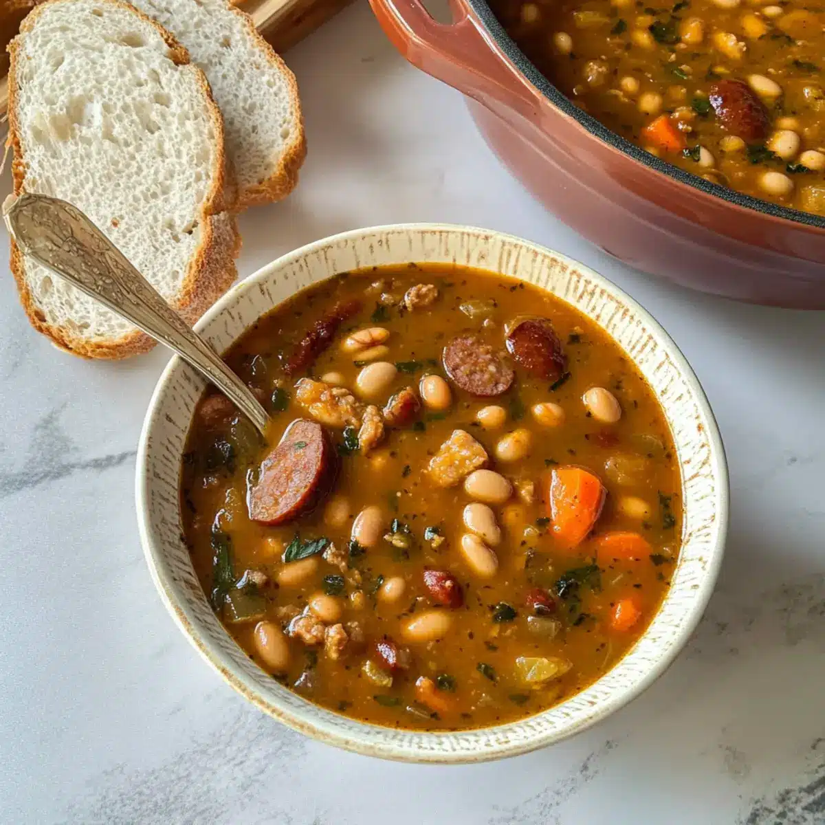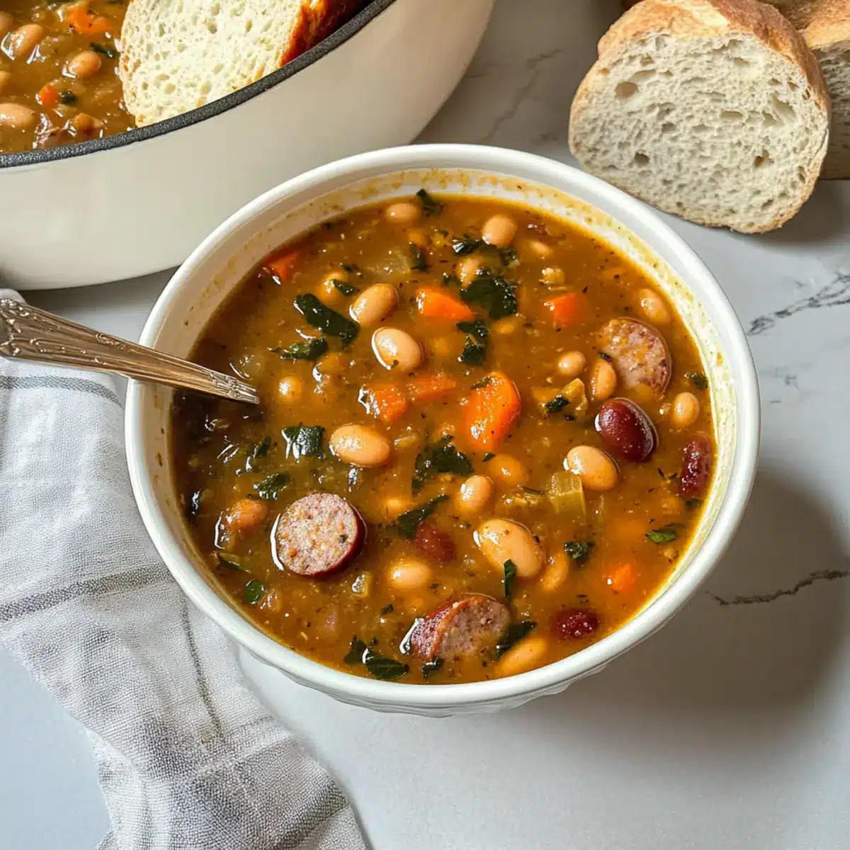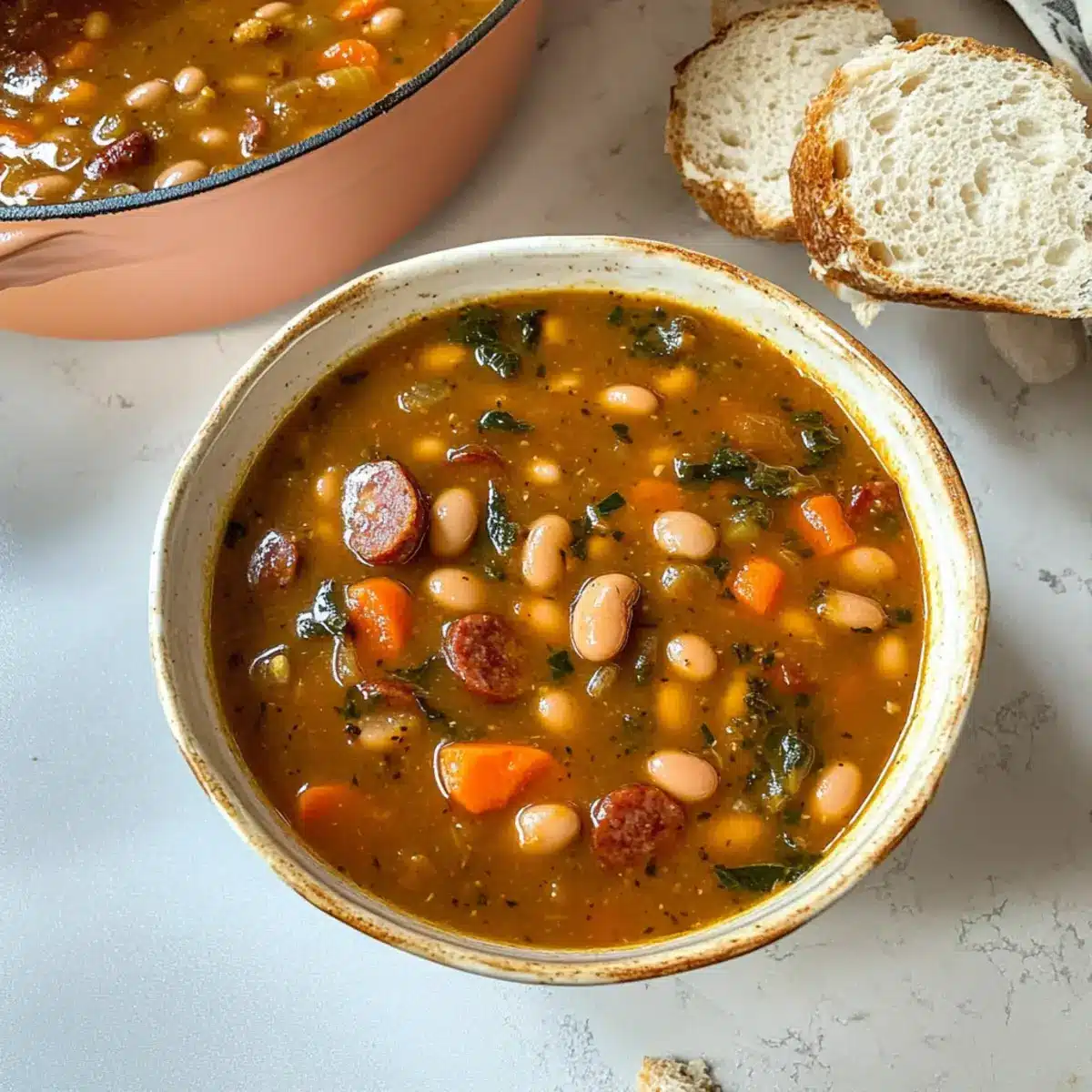 Let the delightful aroma of this hearty bean soup transport your senses as you create a complete meal experience.