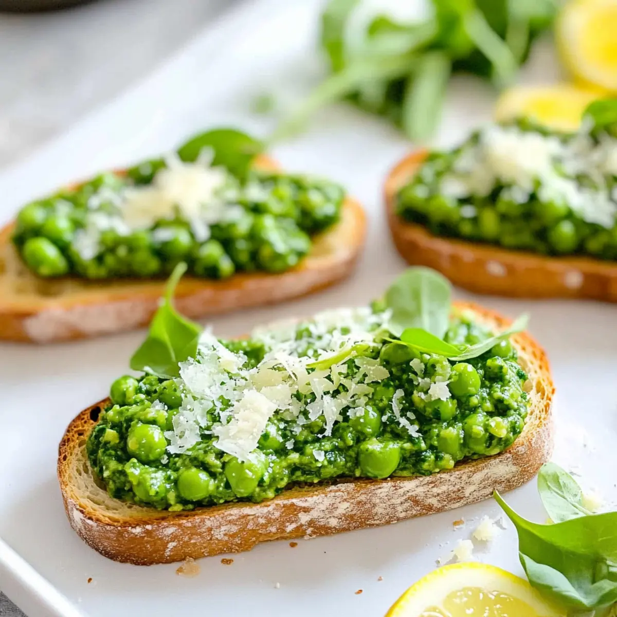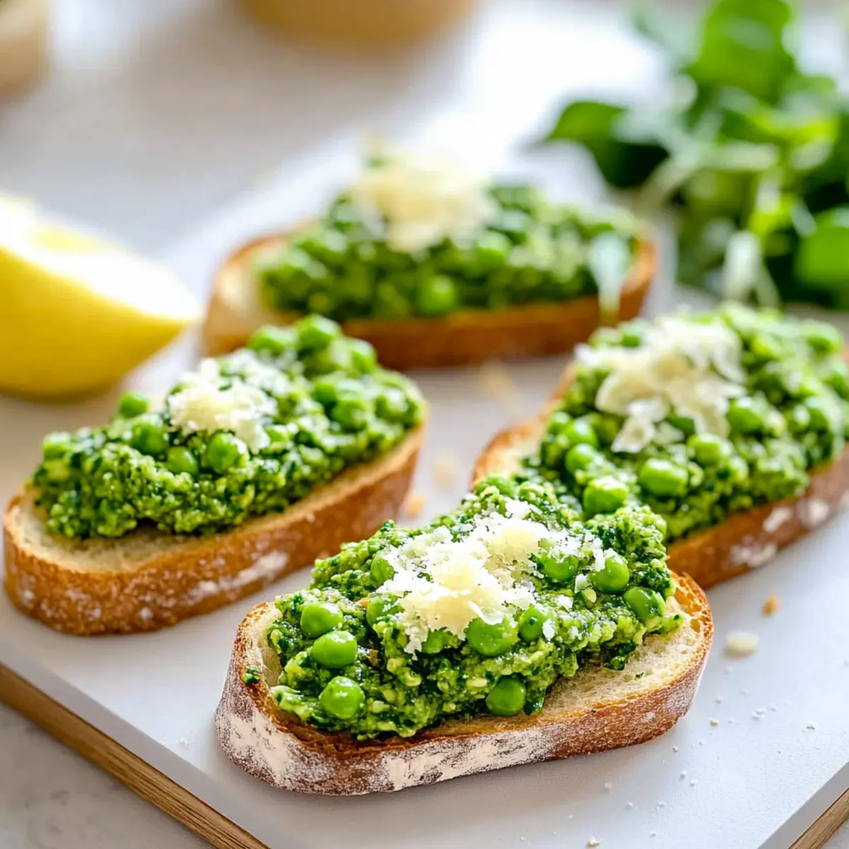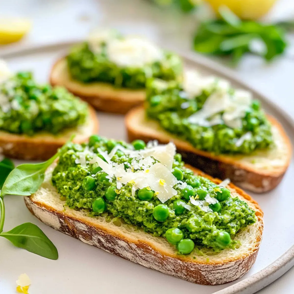 Vibrant Pea Crostini with Creamy Pesto Bliss