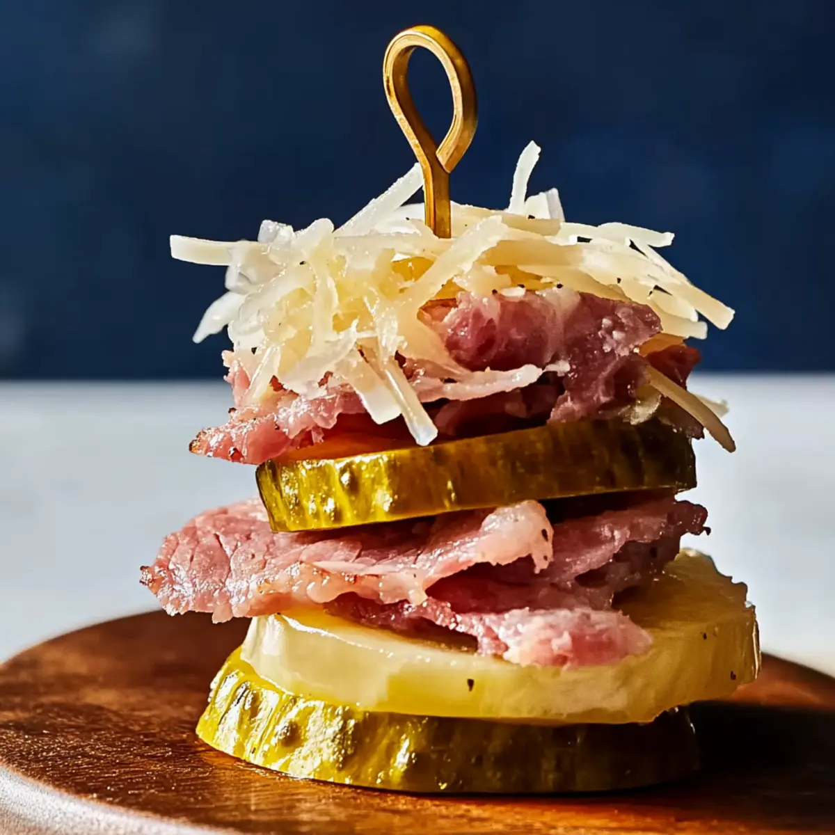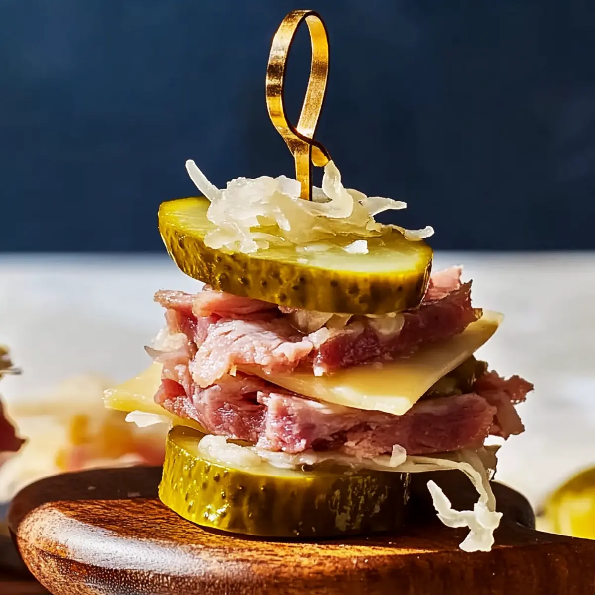 Unlock the flavors of these delightful Reuben Pickle Bites with simple ingredients!