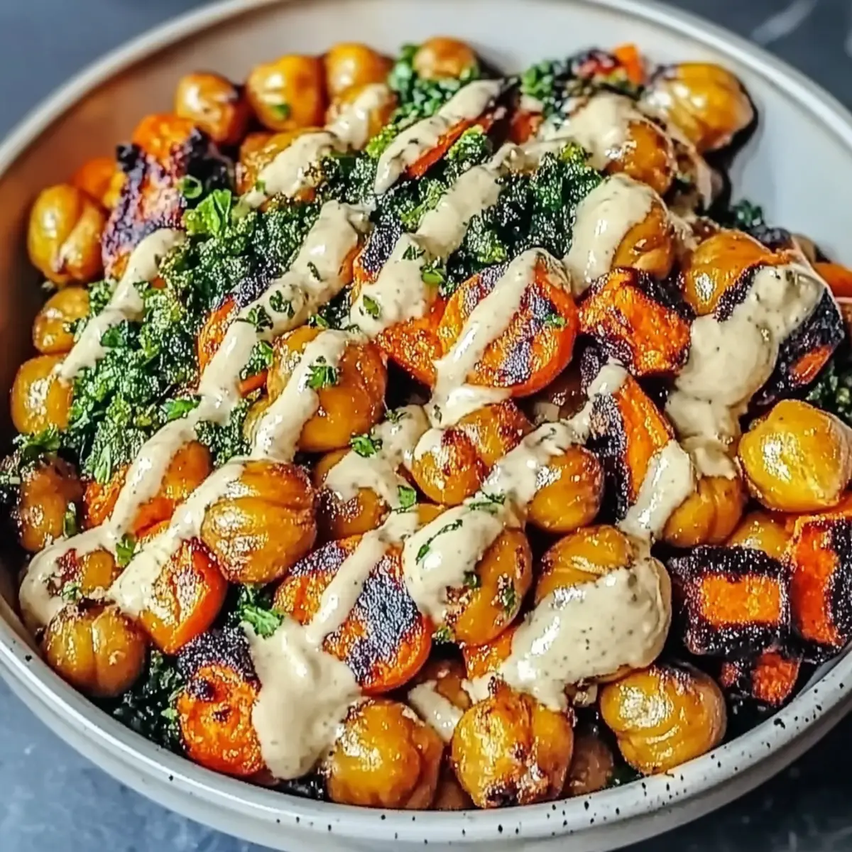 - Roasted Sweet Potatoes: Sweet and caramelized, they add another layer of sweetness that plays beautifully with the chickpeas and dressing.