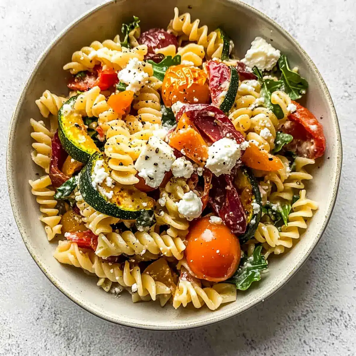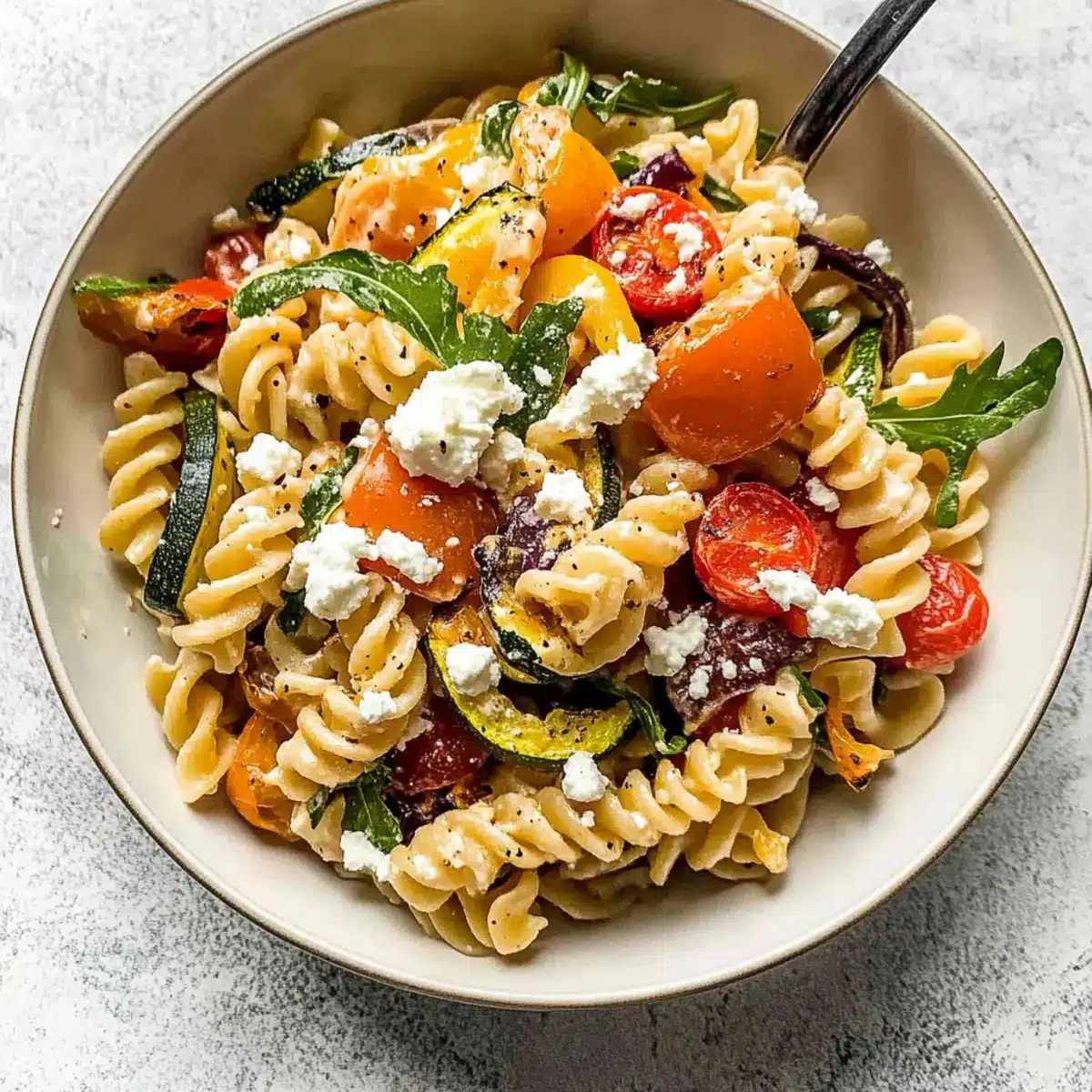 Mix It Up: Experiment with your favorite veggies! If zucchini isn’t your thing, try using mushrooms or even spinach for a different flavor profile in your roasted veggie pasta with feta.
