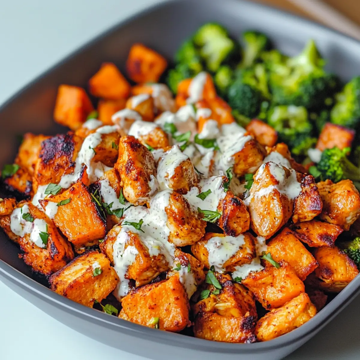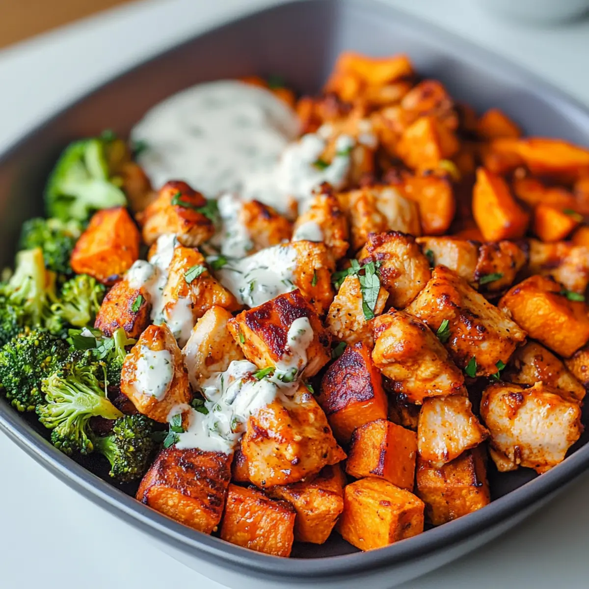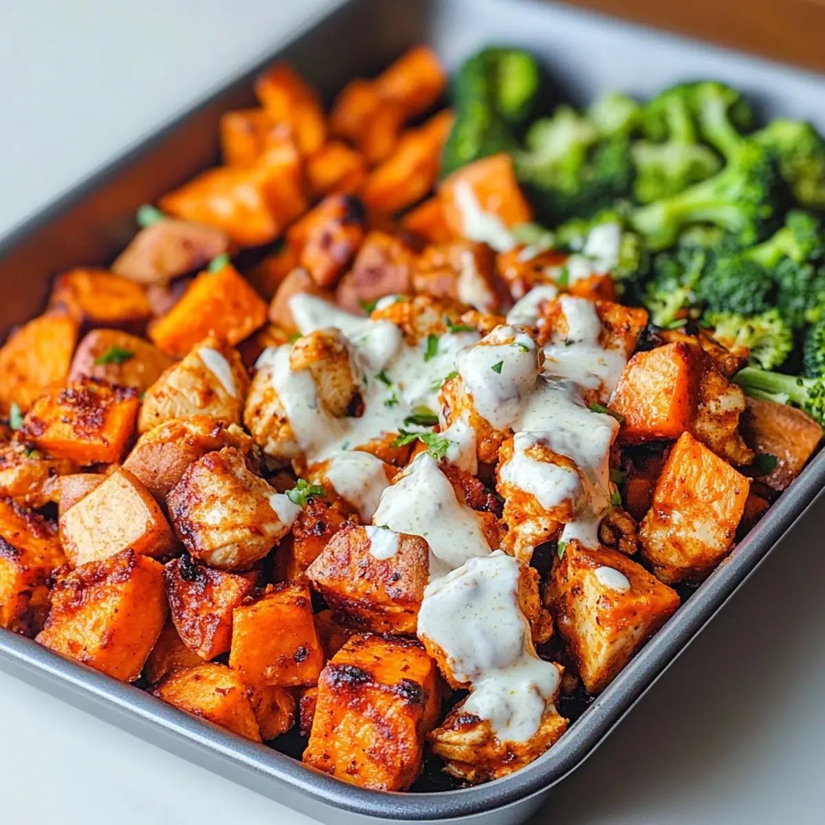 Savory Sheet Pan Buffalo Chicken and Sweet Potato Bowls Delight
