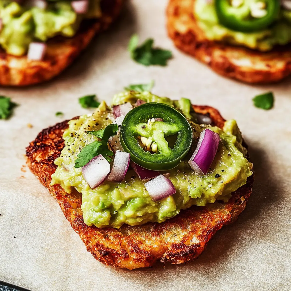 Spicy Smashed Avocado Hash Brown Toasts: A Crunchy Delight