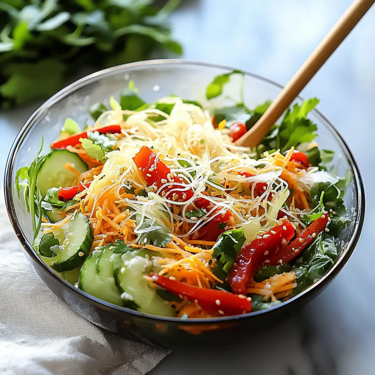 It’s not recommended to freeze this salad, as the fresh vegetables and noodles will lose their texture when thawed. However, if you prepare the salad without the dressing, you can freeze some veggies, like shredded carrots and bell peppers, in a freezer-safe bag for up to 3 months. Just be sure to add fresh ingredients when you’re ready to enjoy it!