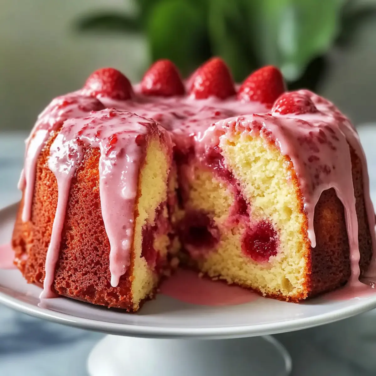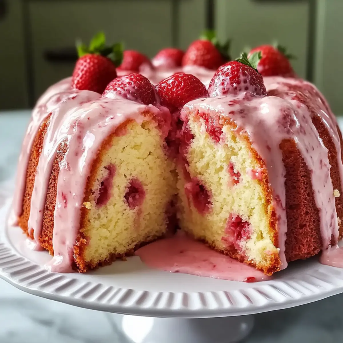 **Delightful ** Flavor: The fusion of fresh strawberries and a strawberry milk glaze truly elevates this pound cake to new heights of deliciousness.