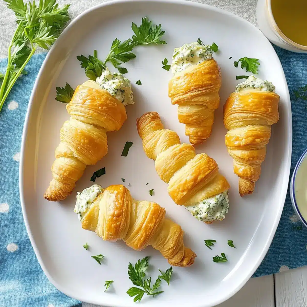 These Stuffed Crescent Roll Carrots are perfect for meal prep enthusiasts! You can prepare the carrot shells up to 24 hours in advance by shaping the crescent dough around the foil molds and baking them, then storing them in an airtight container at room temperature to maintain their crispness. Additionally, the herbed cream cheese filling can be made up to 3 days ahead; simply refrigerate it in an airtight container. When you’re ready to serve, just fill the cooled carrot shells with the cream cheese mixture and garnish with fresh parsley sprigs. This prep-ahead approach saves you time during busy weeknights while ensuring your gorgeous appetizers remain just as delicious!