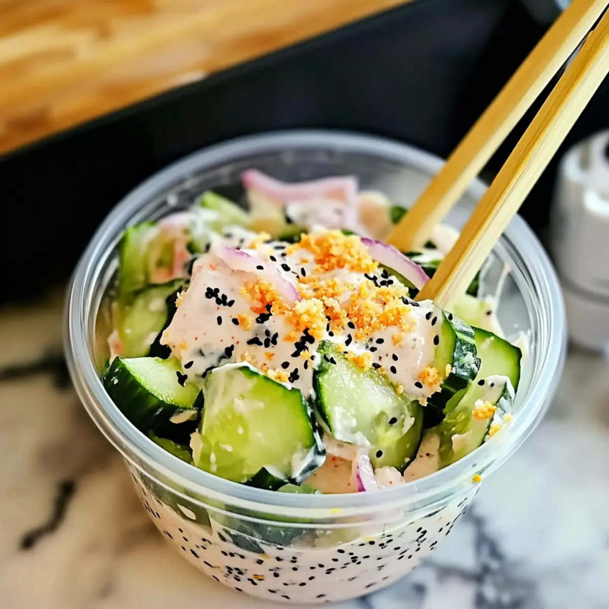 - Serving Fresh: For the best experience, serve the salad immediately after preparing it to enjoy the contrast of crisp cucumbers and creamy dressing.