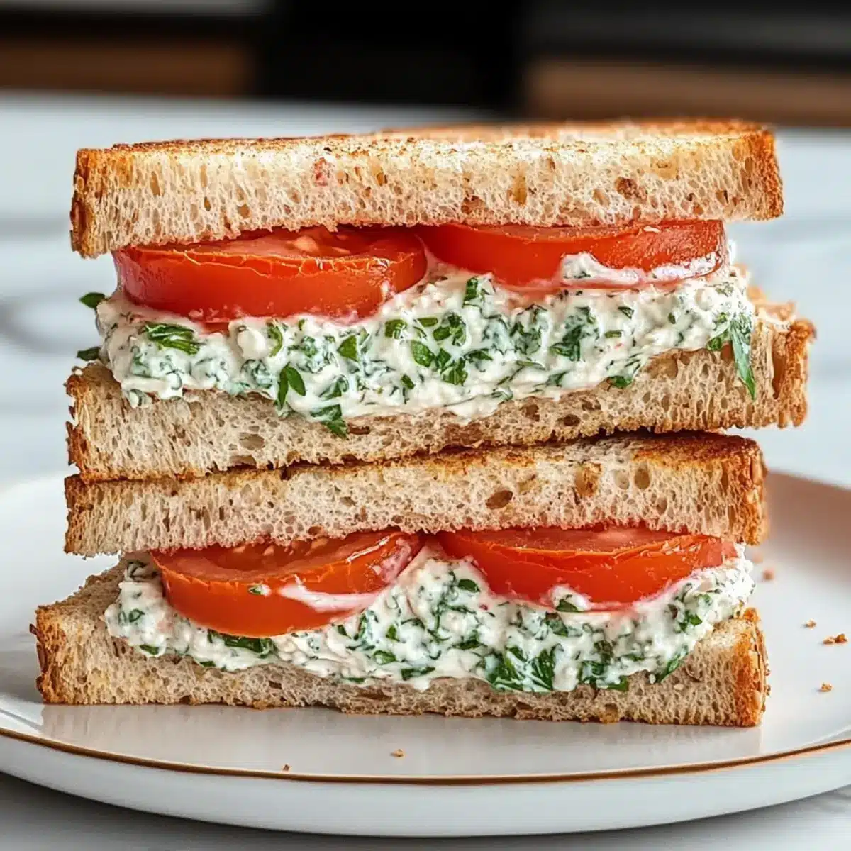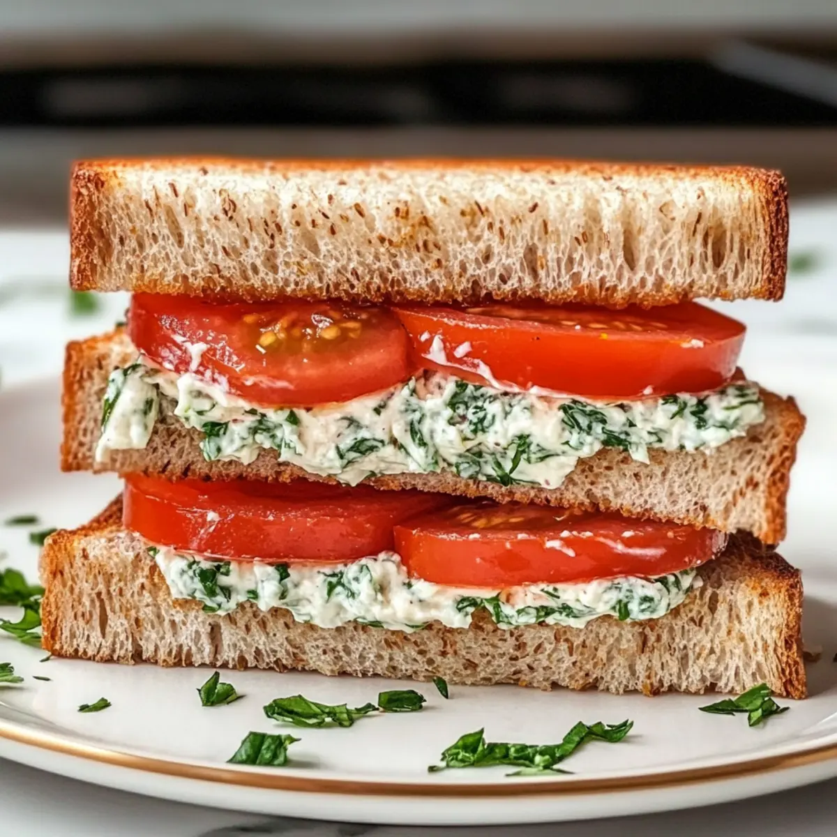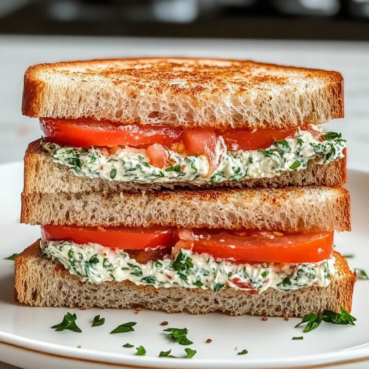 These delightful Tomato Sandwiches are perfect for meal prep enthusiasts looking to save time! You can prepare the herby cream cheese spread up to 3 days in advance; simply blend the ingredients and store the mixture in an airtight container in the refrigerator. To maintain the freshness of your sandwich, slice the tomatoes just before assembly, as they can make the bread soggy if prepped too early. You can also toast the whole wheat bread a day ahead and keep it in a zip-top bag to preserve its crunch. When you’re ready to serve, just assemble the sandwich and enjoy a summer classic that’s just as delicious as if made fresh!