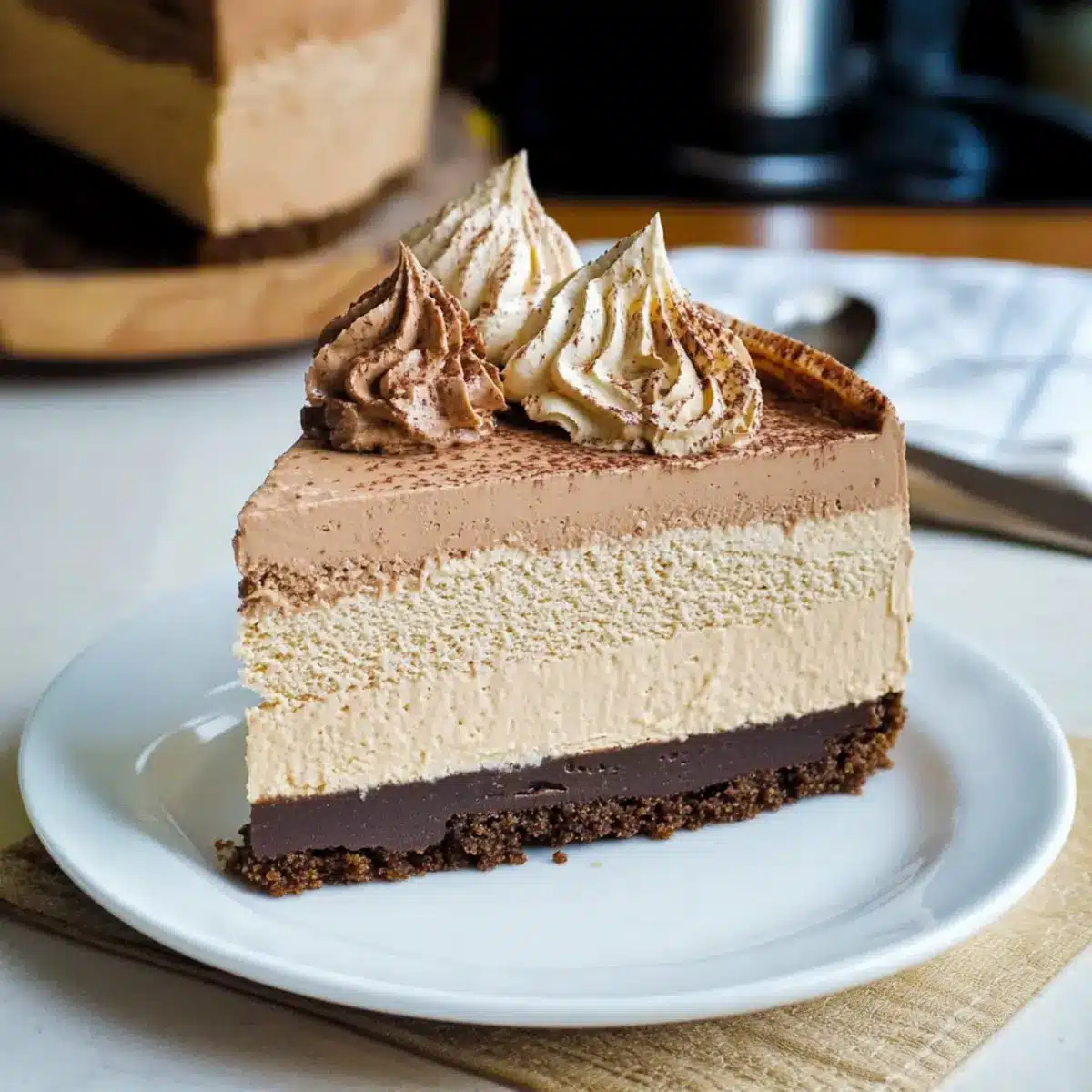 Chill Thoroughly: Allow your cheesecake to chill overnight; this helps the layers to set properly and enhances the overall flavor of the Triple Coffee Cheesecake.