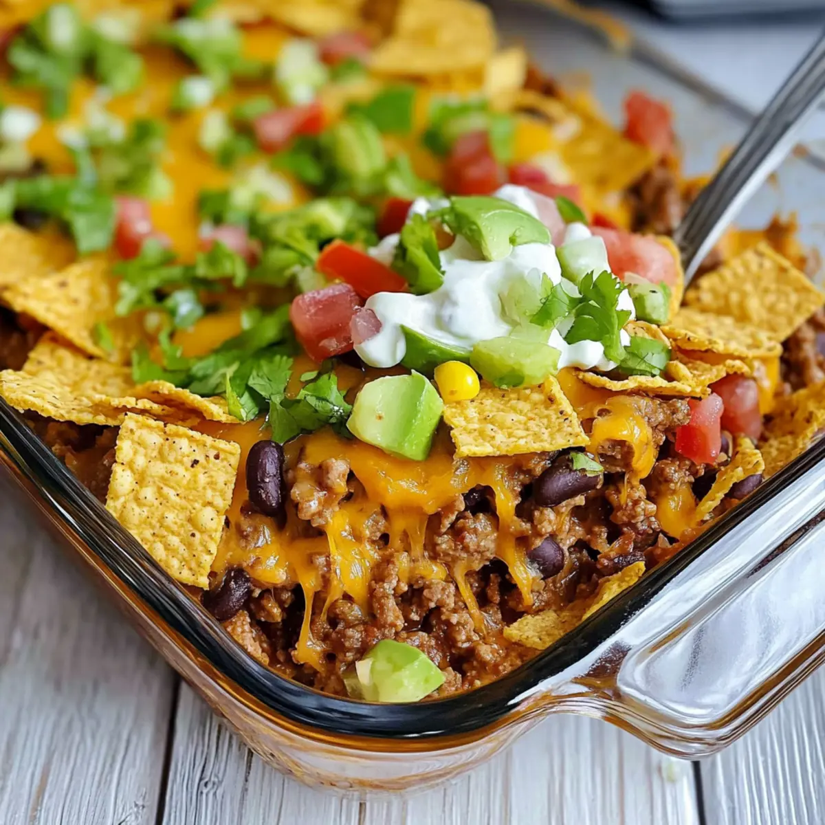 Topping Reminder: If possible, add fresh toppings like sour cream and guacamole just before serving to maintain their texture and flavor. Enjoy your delicious Walking Taco Casserole!